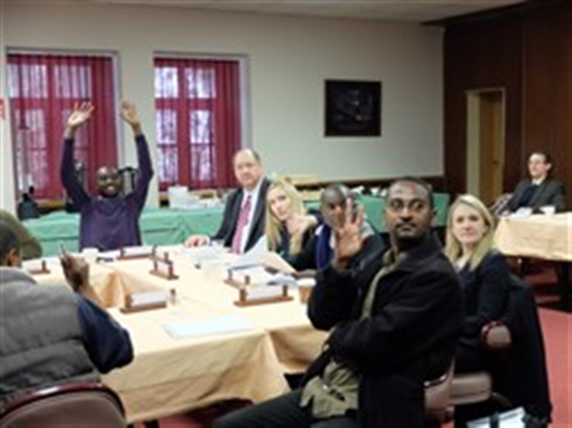 Journalists who participated in the delegation visit were Eskinder Firew Azmatch, a reporter for Voice of America Amharic, based in Addis Ababa, Ethiopia; Jenine Coetzer, executive producer, English Current Affairs at Channel Africa in Johannesburg, South Africa; Andualem Sisay Gessesse, correspondent to Nation Media Group of Kenya, based in Addis Ababa, Ethiopia; Emmanuel Igunza Kinyaga, a journalist working as BBC Africa’s bilingual correspondent in Ethiopia and Kenya; Robyn Lee Kriel, eNews Channel Africa’s East Africa Bureau chief, based in Nairobi, Kenya; Aggrey Mutambo Nyongesa who writes on foreign relations and regional humanitarian affairs for Kenya’s Daily Nation newspaper; Charles Onyango-Obbo, editor of Mail and Guardian Africa, based in Nairobi, Kenya; and Elias Meseret Taye, a correspondent for the Associated Press for Ethiopia and the African Union. Escorts for the AU journalists were Lina Mohammed Ibrahim, the local national escort official from the U.S. Mission to the AU, and David Benton, senior international press officer with the U.S. State Dept. based in Washington.