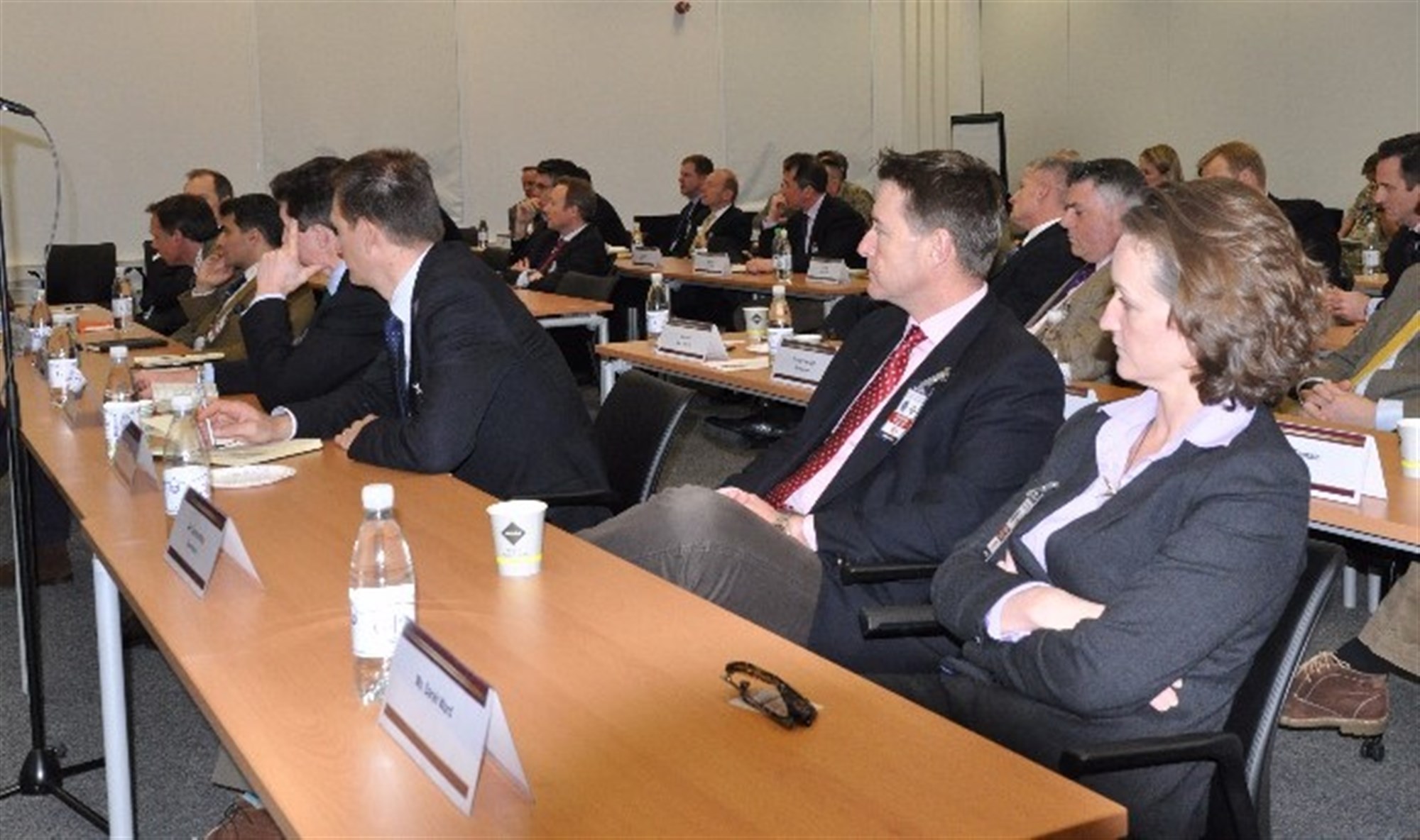 More than 40 participants from the UK High Command and Staff College visit the command's headquarters in Stuttgart, Germany, March 13, 2015. The students consisting of 34 student military officers and their teaching and civilian support staff learned about AFRICOM’s roles and mission on the African continent, and they also had the opportunity to interact with senior staff from the command. (U.S. Africa Command photo/Technical Sergeant Olufemi A. Owolabi)