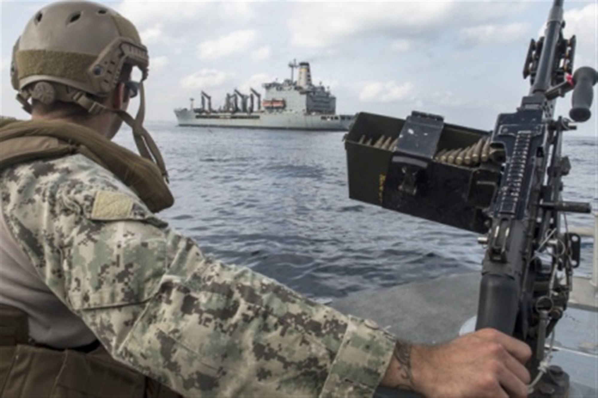 “We provide security while they are here, predominately taking on goods and fuel for the warships out off the coast of Africa, in the Red Sea and the Gulf of Aden,” said U.S. Navy Cmdr. Jason Levine, CRS-1 mission commander. “The warships out there are providing security, doing anti-piracy, and doing all those different missions for Fifth Fleet and Sixth Fleet and Combined Joint Task Force – Horn of Africa in the joint operating area.”