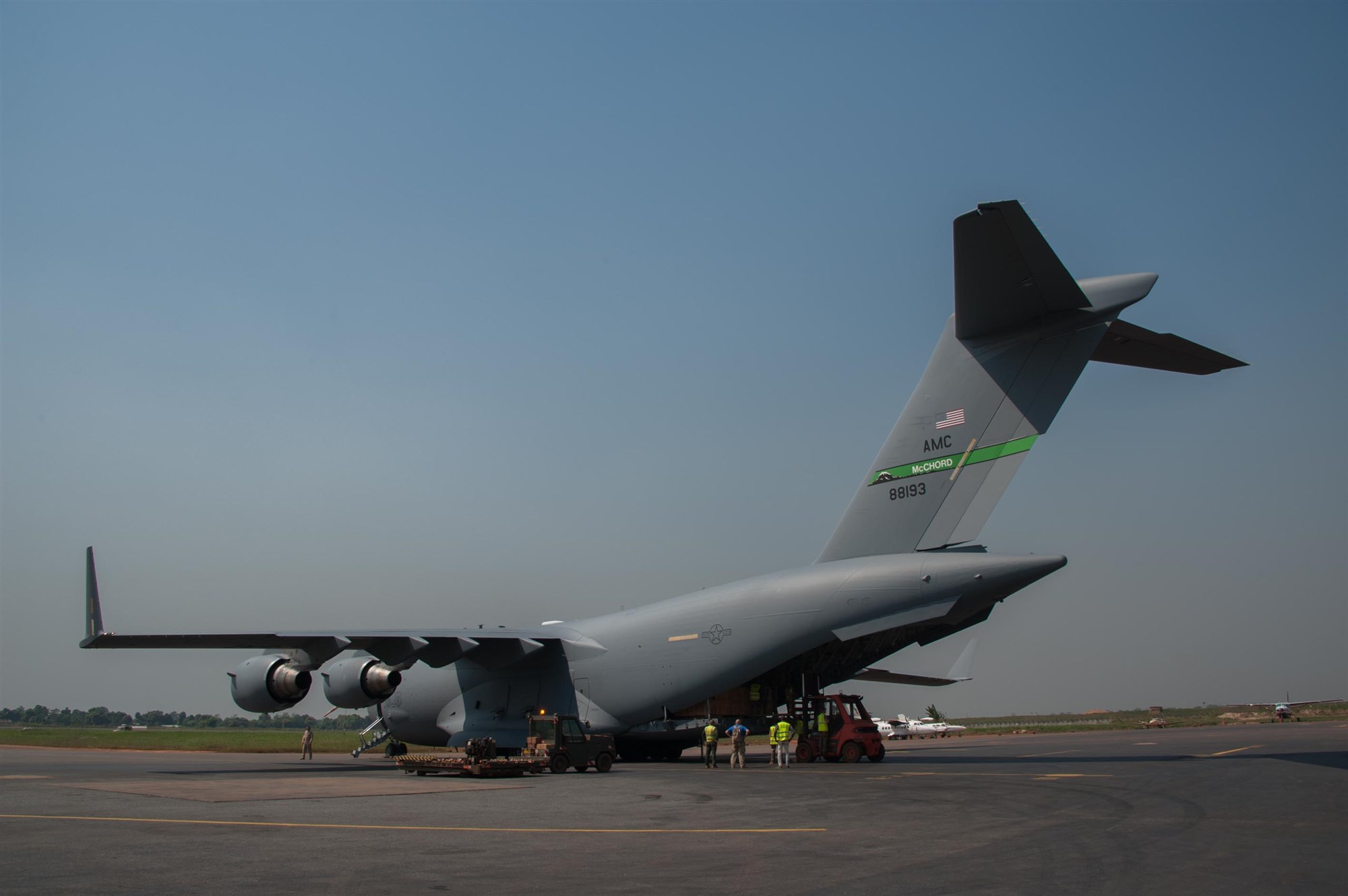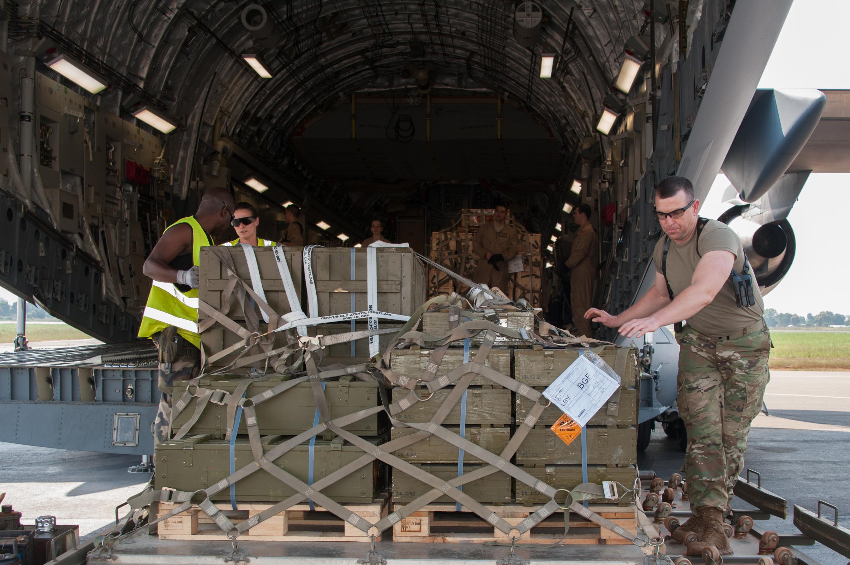 Both the U.S. and France provided military manpower in Libreville, Gabon, and the Central African Republic’s capital, Bangui, to help with the loading/unloading and transport of equipment. The result was the timely deployment of more than 450,000 pounds of vital equipment and vehicles for the Gabonese military.