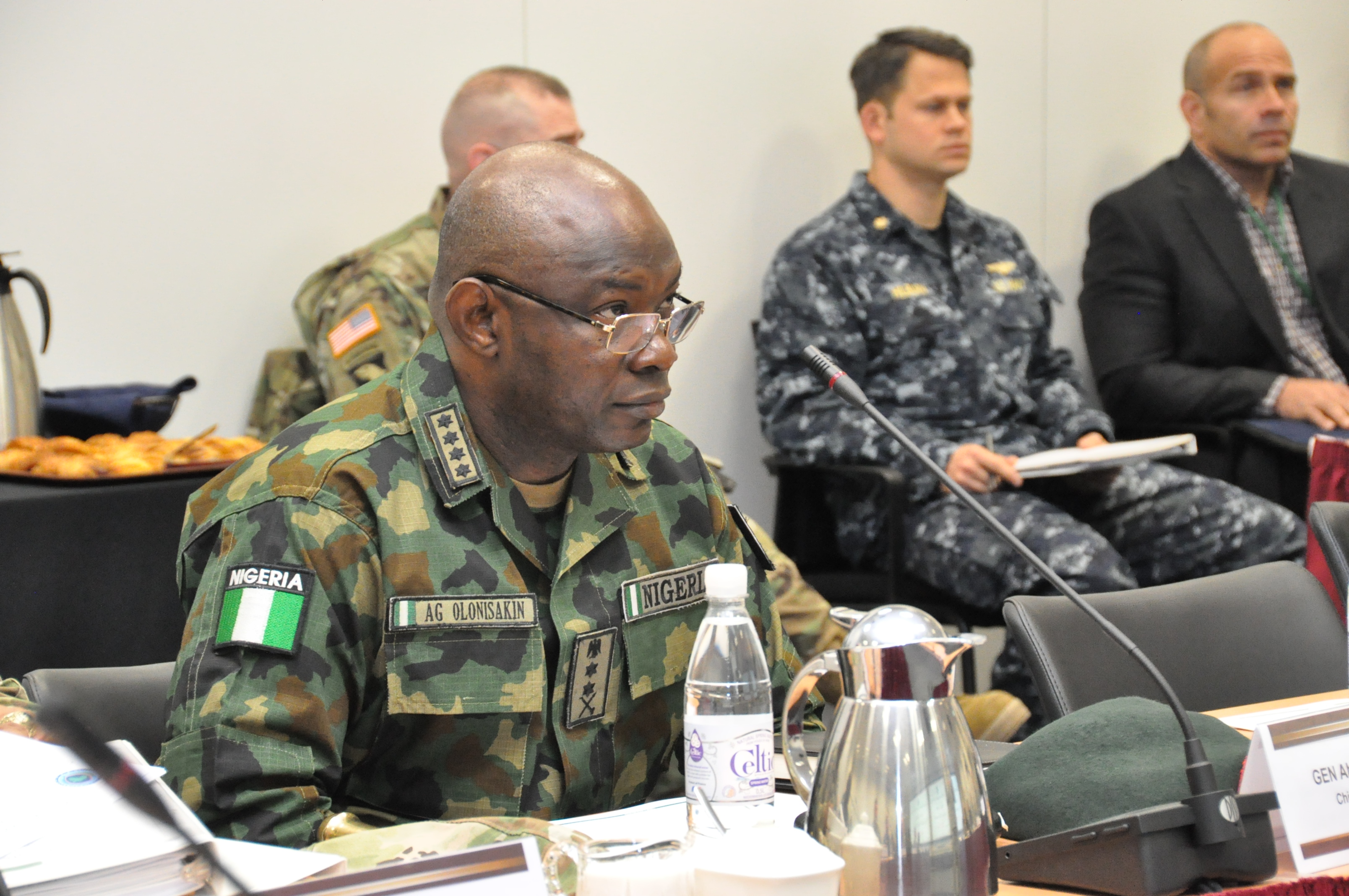 Traveling with Gen. Olonisakin were Maj. Gen. Clement Temidayo Olukoju, principal general staff officer to the CDS, Maj. Gen. Lincoln KJ Ogunewe, Nigeria Army chief of plans and policy, Rear Adm. I.O. Mohammed, Nigeria Navy, Air Commodore Aminu Yakubu, Nigeria defence attaché in Washington, DC, and COL E.J. Amadasun, assistant director of operations.
