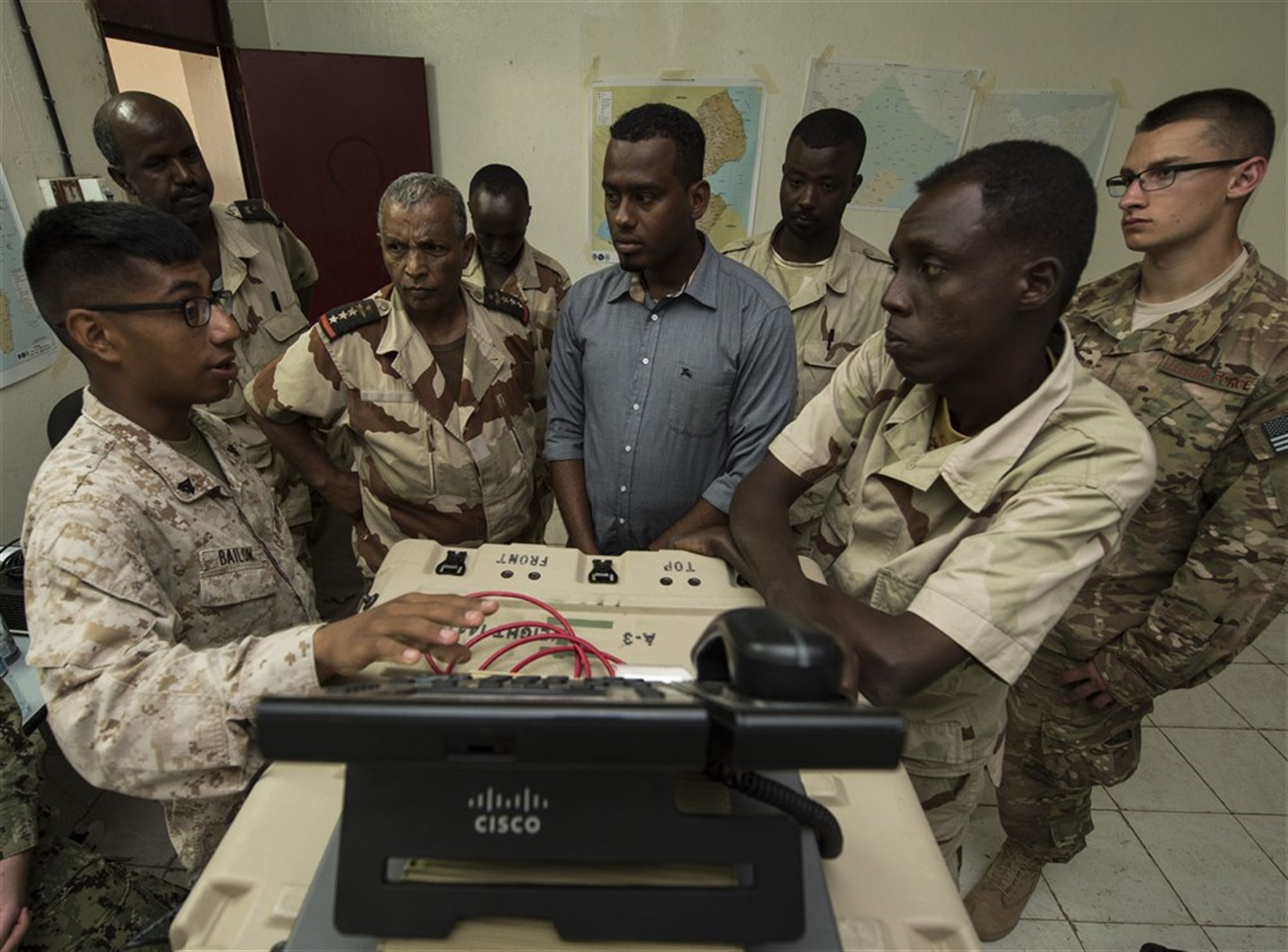 CAMP LEMONNIER, Djibouti - Service members assigned to the Combined Joint Task Force-Horn of Africa Communications Directorate (CJ-6) visited the Djiboutian Armed Forces (FAD) Headquarters to share information on the Africa Data Sharing Network (ADSN) Feb. 15-18, in Djibouti.