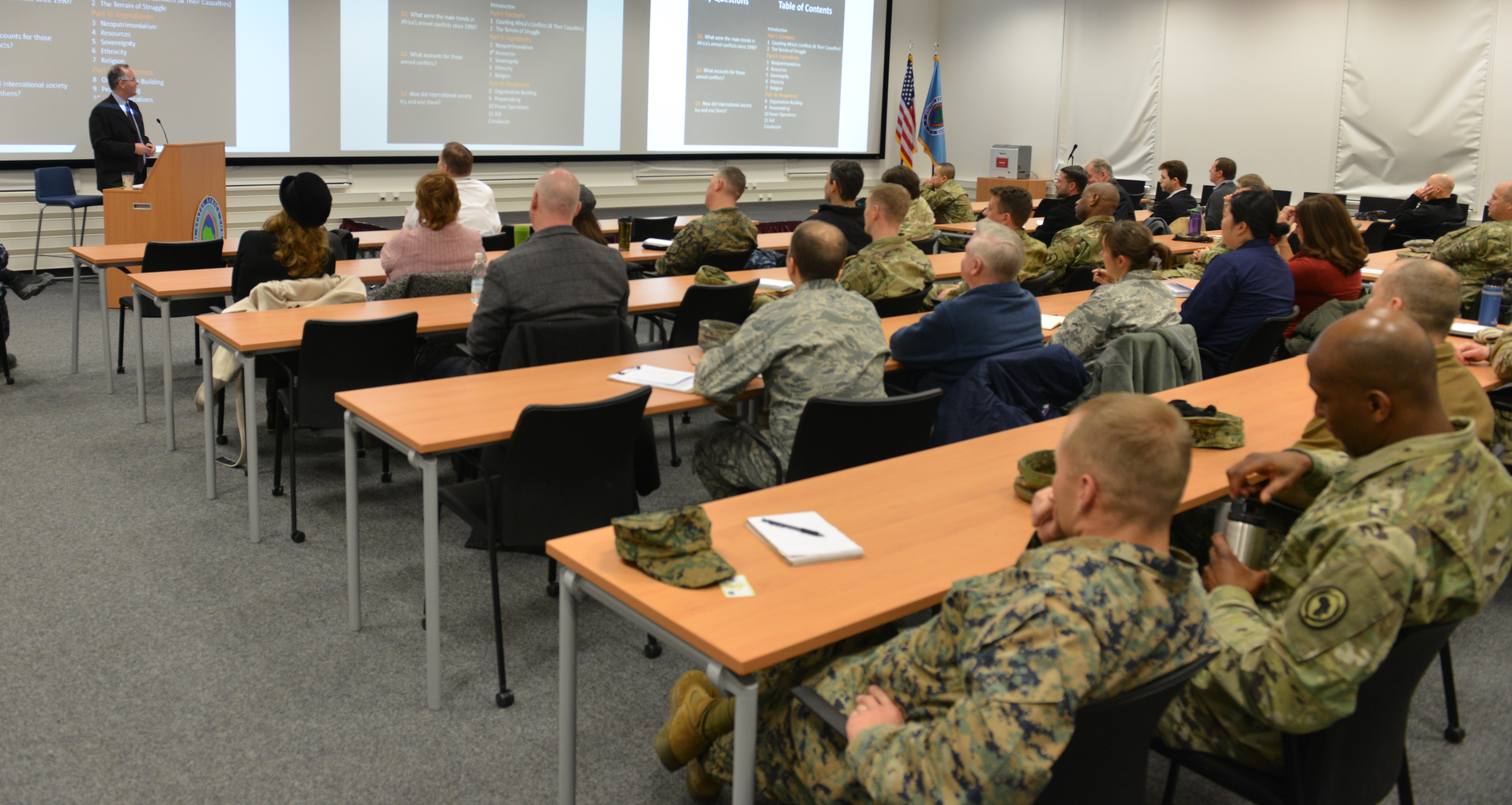 At the invitation of U.S. Amb. Donald Koran, who currently serves as the vice director, Strategy, Plans, and Programs (J5) at U.S. AFRICOM, and former U.S. ambassador to Rwanda, Williams presented his conclusions and shared his perspectives regarding the factors that resulted in the increase of war and conflict on the African continent and how they could be mitigated to reduce the trend.