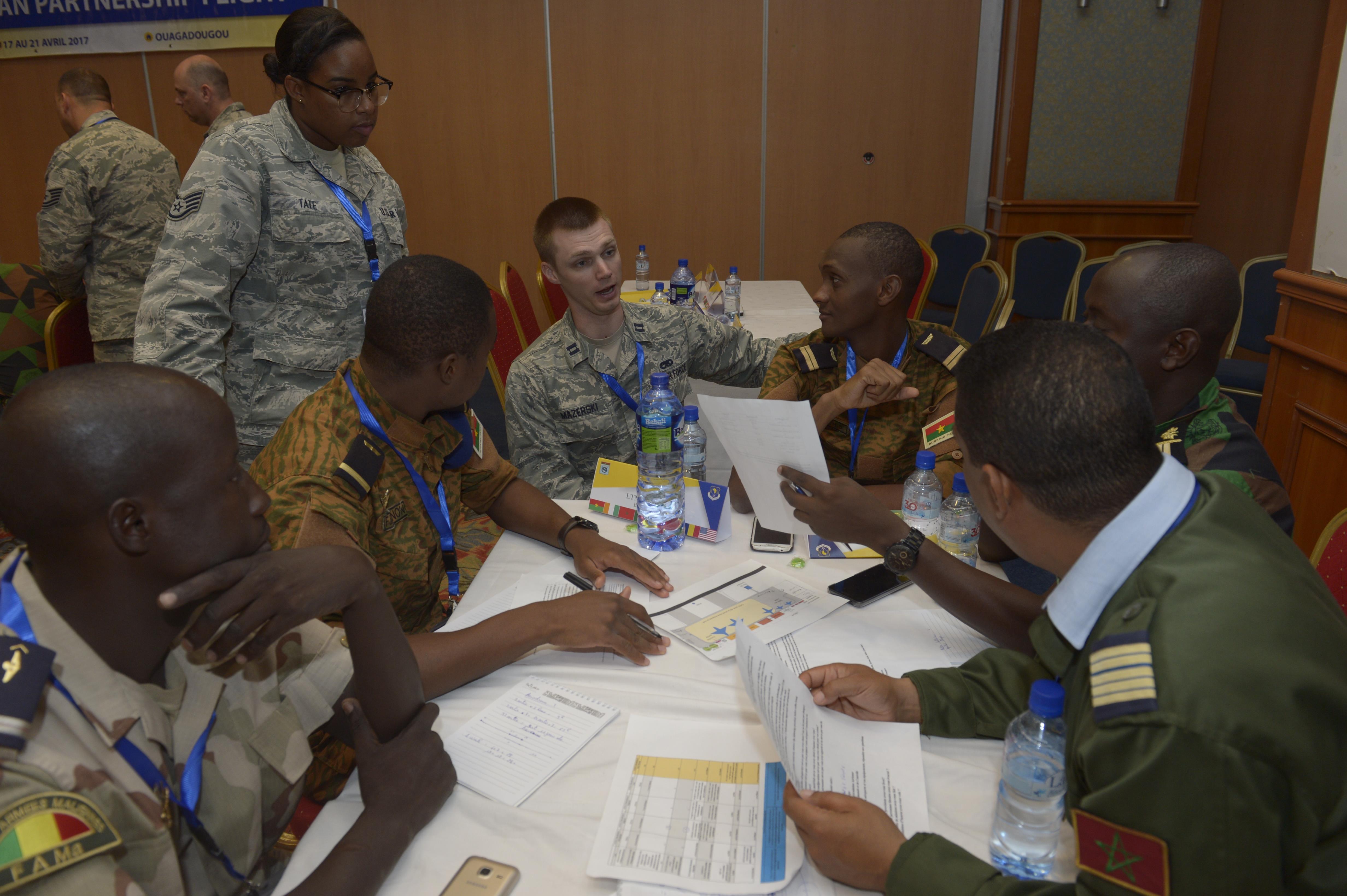 In all, APF in Burkina Faso hosted airmen from Chad, Mali, Mauritania, Niger, Cote d’Ivoire and Morocco to help strengthen relationships and share aviation best practices through classroom instruction and tabletop workshops.