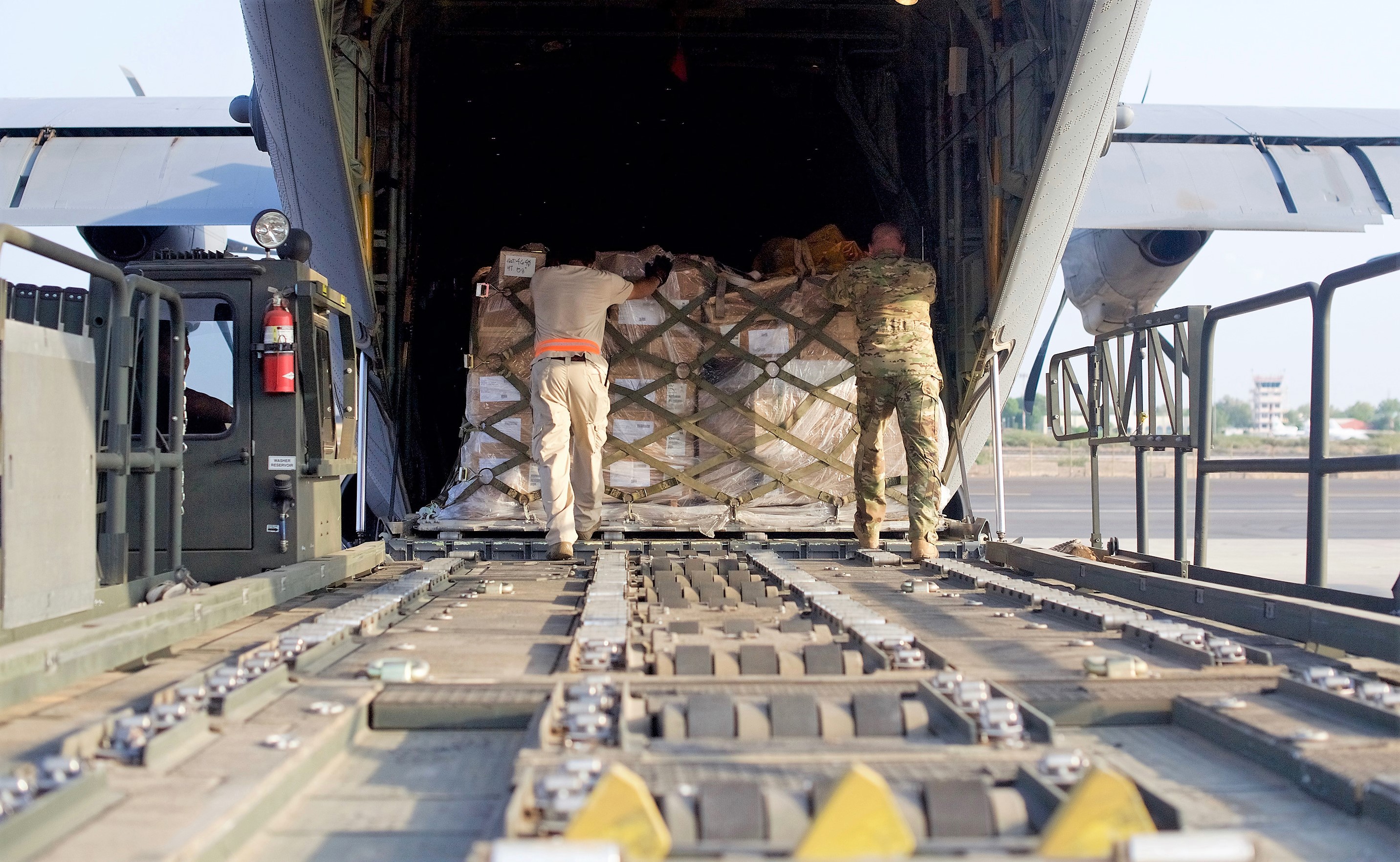 “Here at Camp Lemonnier we have a dedicated team of logisticians, working through the night to gather this material from supply depots, palletize it, get in on the aircraft, and prep for transport.”