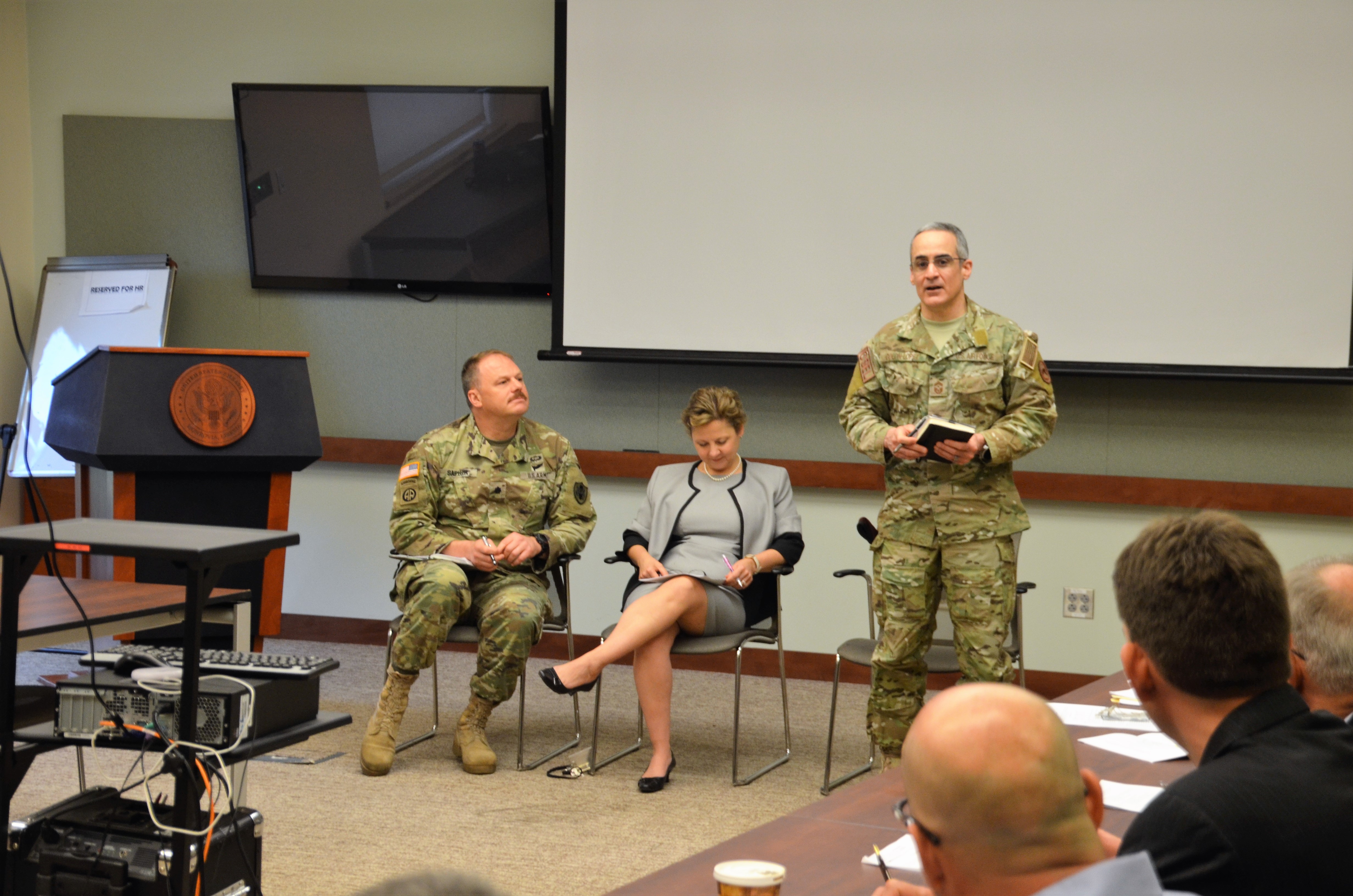 During the visit, Elder, Colon-Lopez, and Lt. Col. Marc Saphir, U.S. Senior Defense Official/Defense Attaché, led a panel discussion, which included talks about enhancing Liberian military capacity through noncommissioned officer development, state partnership programs and defense priorities.