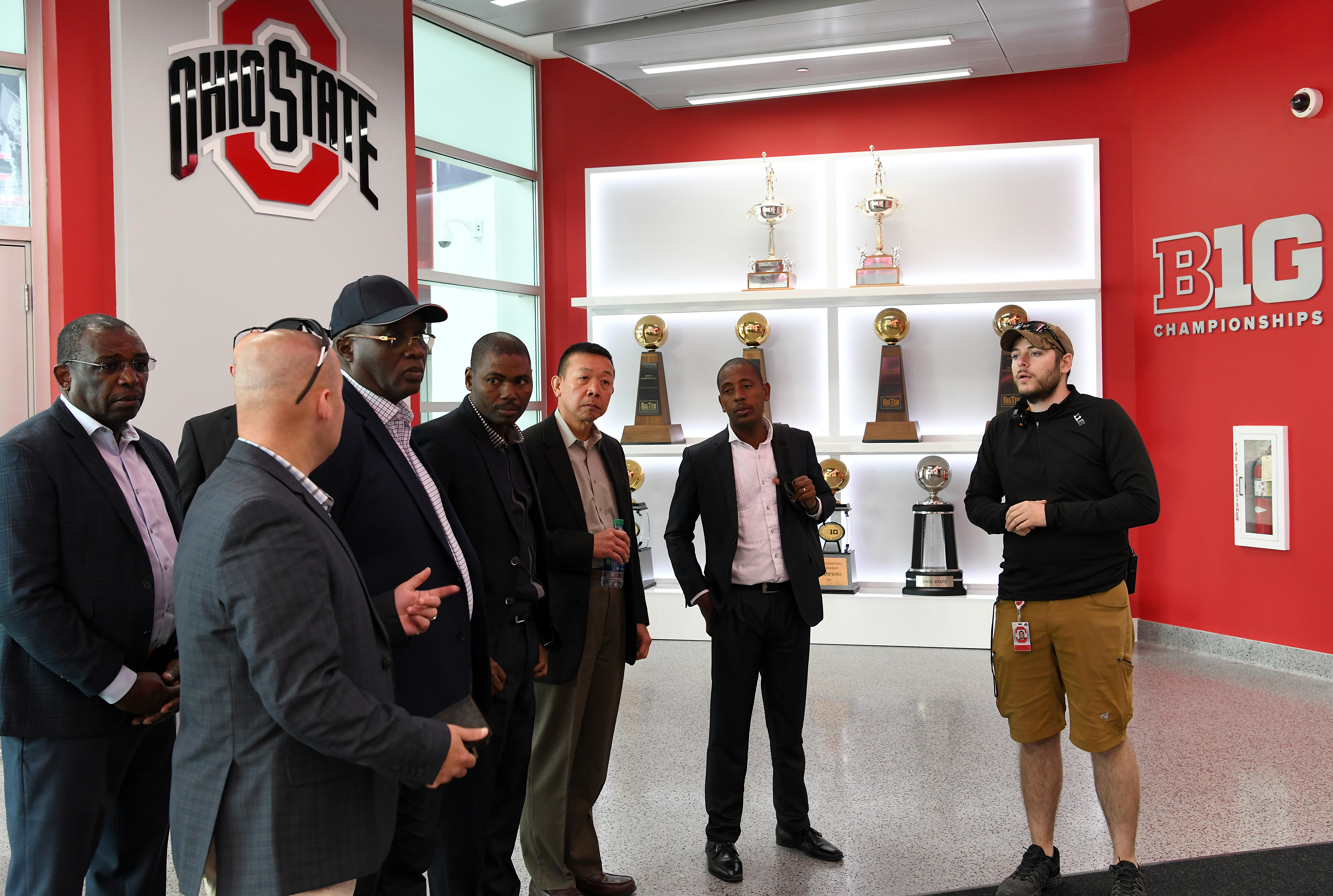 U.S. service members and an Angolan Armed Forces delegation tour The Ohio State University Schottenstein Center during an official visit to Ohio from Gen. Jaques Raul, Angolan Armed Forces deputy land forces commander, June 4, 2019, in Columbus, Ohio. The visit enabled the sharing of military best practices, encouraged cross-nation cultural understanding and promoted the development of professional relationships.
