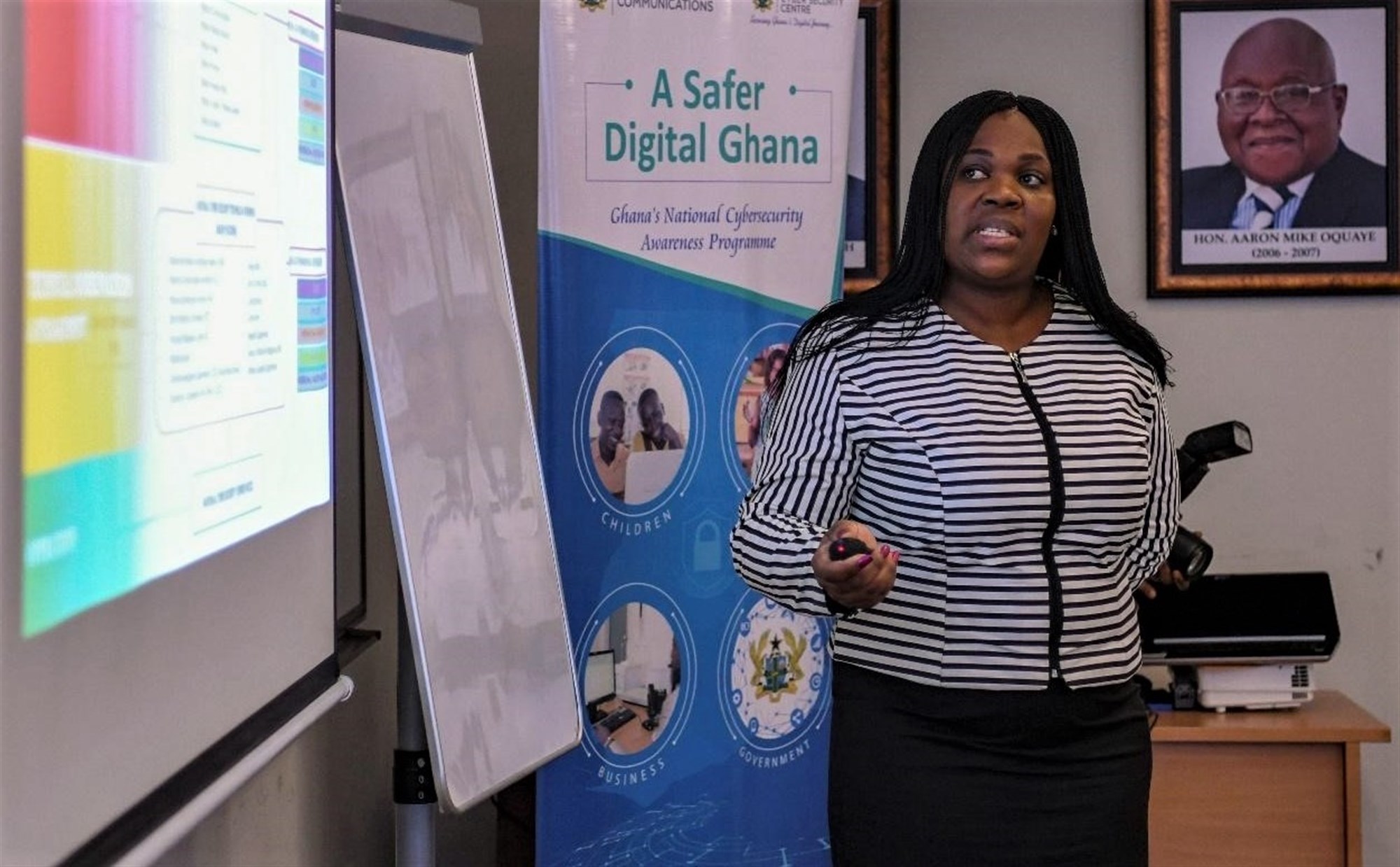 At the Ghana national CERT, the officer responsible, Audrey Mnisi Mireku, gave a brief presentation of the policy direction, technical coordination and arrangement, and the operations of the organization.