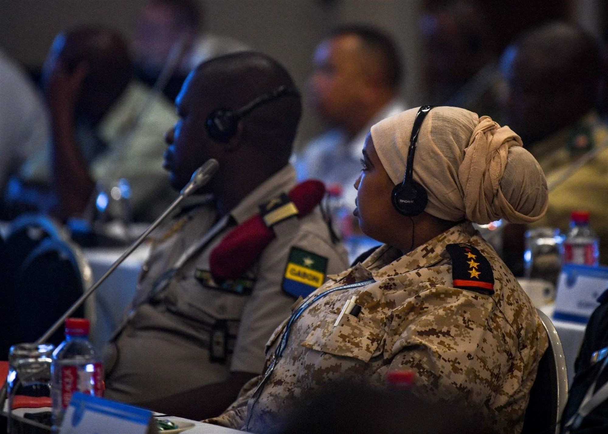 African military representatives listen to a seminar on Ghana’s cyber security initiatives during Africa Endeavor 2019 in Accra, Ghana, Aug. 20, 2019. Africa Endeavor is an annual five-day U.S. Africa Command senior leader communications symposium, and technology exposition. The event focuses on strategic level Command, Control, Communications, Computers and Information, Tactics, Techniques, and Procedures to encourage communications interoperability and information sharing among our African partners. (U.S. Navy photo by Mass Communication Specialist Second Class Eric Coffer)