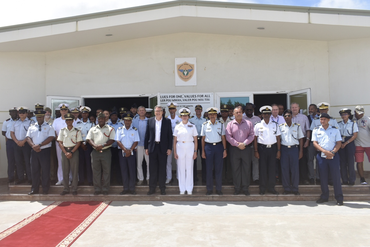 A group photo during the closing ceremony of exercise Cutlass Express 19.2 Nov. 16, 2019 in Victoria, Seychelles. CNE-CNA/C6F, headquartered in Naples, Italy, conducts the full spectrum of joint and naval operations, often in concert with allied and interagency partners in order to advance U.S. national interests and security and stability in Europe and Africa.
