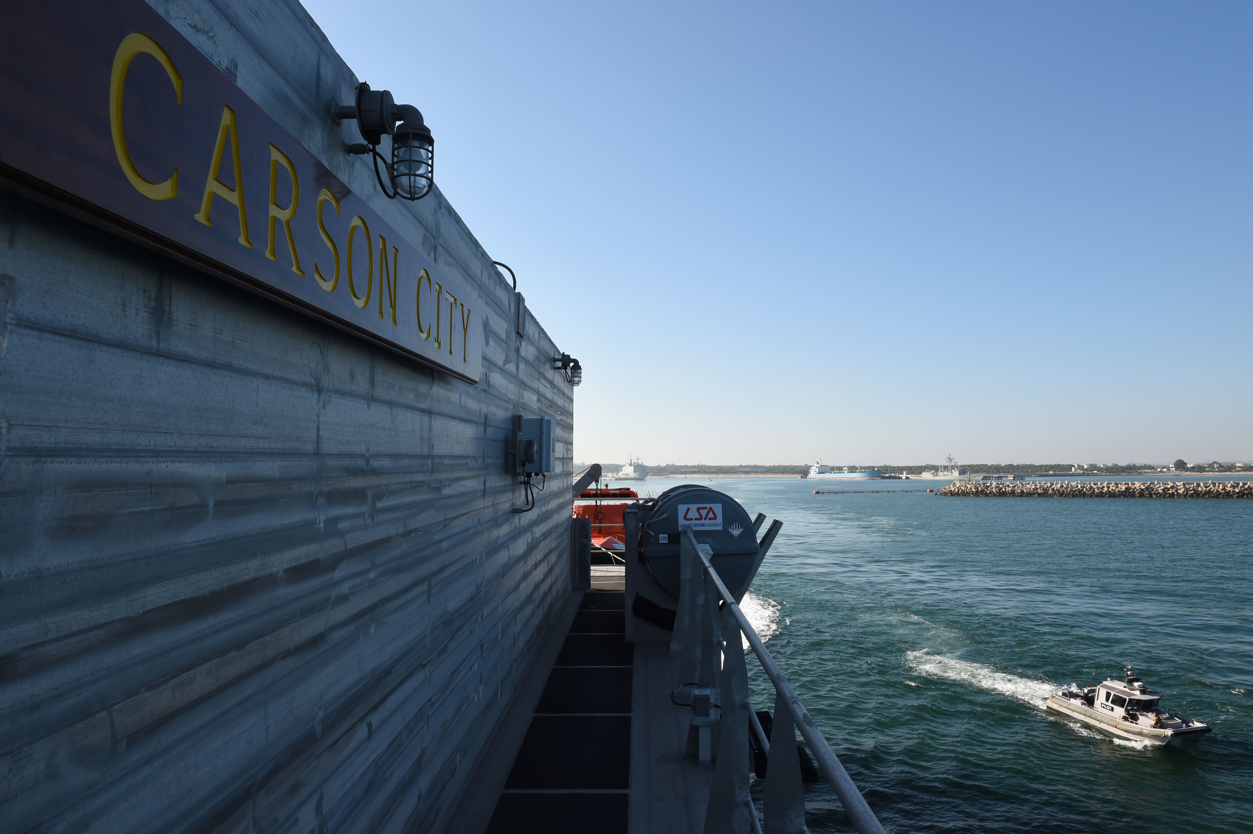 “The deployment of USNS Carson City to the Gulf of Guinea enables our partners to improve maritime security along their coastlines, territorial seas, and exclusive economic zones,” said Adm. James G. Foggo III, commander, U.S. Naval Forces Europe-Africa. “Maritime security is critical for coastal nations as seaborne trade is the lifeblood of global trade. When maritime trade freely sails across the seas, economic development and opportunities for prosperity are possible.”