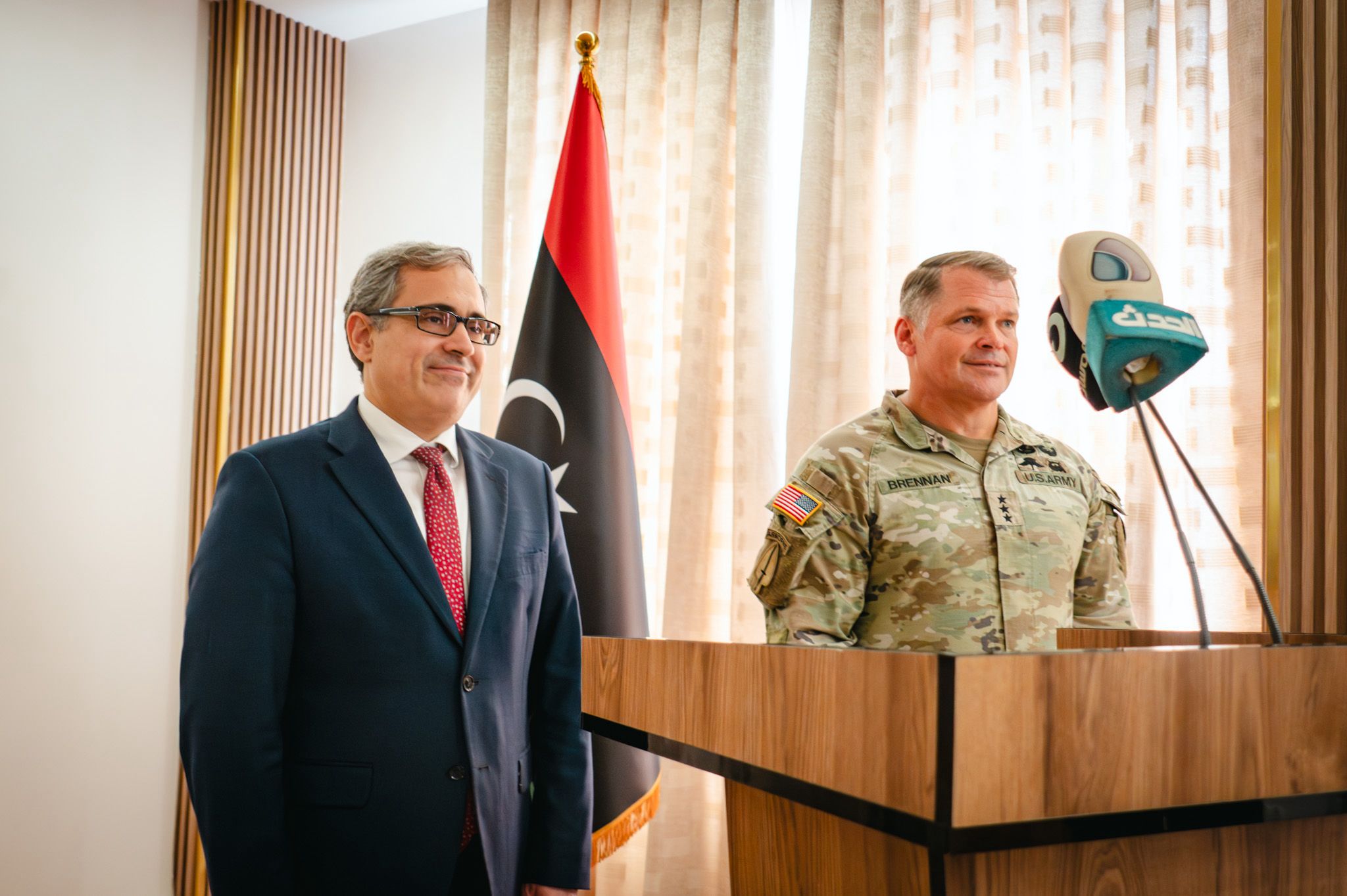 “I was pleased to join Lt. Gen. Brennan for this important visit as U.S. military forces work with Libyan partners from the east and west to host a key location for Exercise Flintlock in Libya for the first time. The exercise will support Libyan efforts to unify military institutions and develop the capability to take full responsibility for their own security,” said Jeremy Berndt, Chargé d’Affaires of the U.S. Embassy to Libya, who was also at the announcement. “Unity, peace, and stability are key elements to enable economic investment and increase prosperity for the Libyan people and their international partners.”