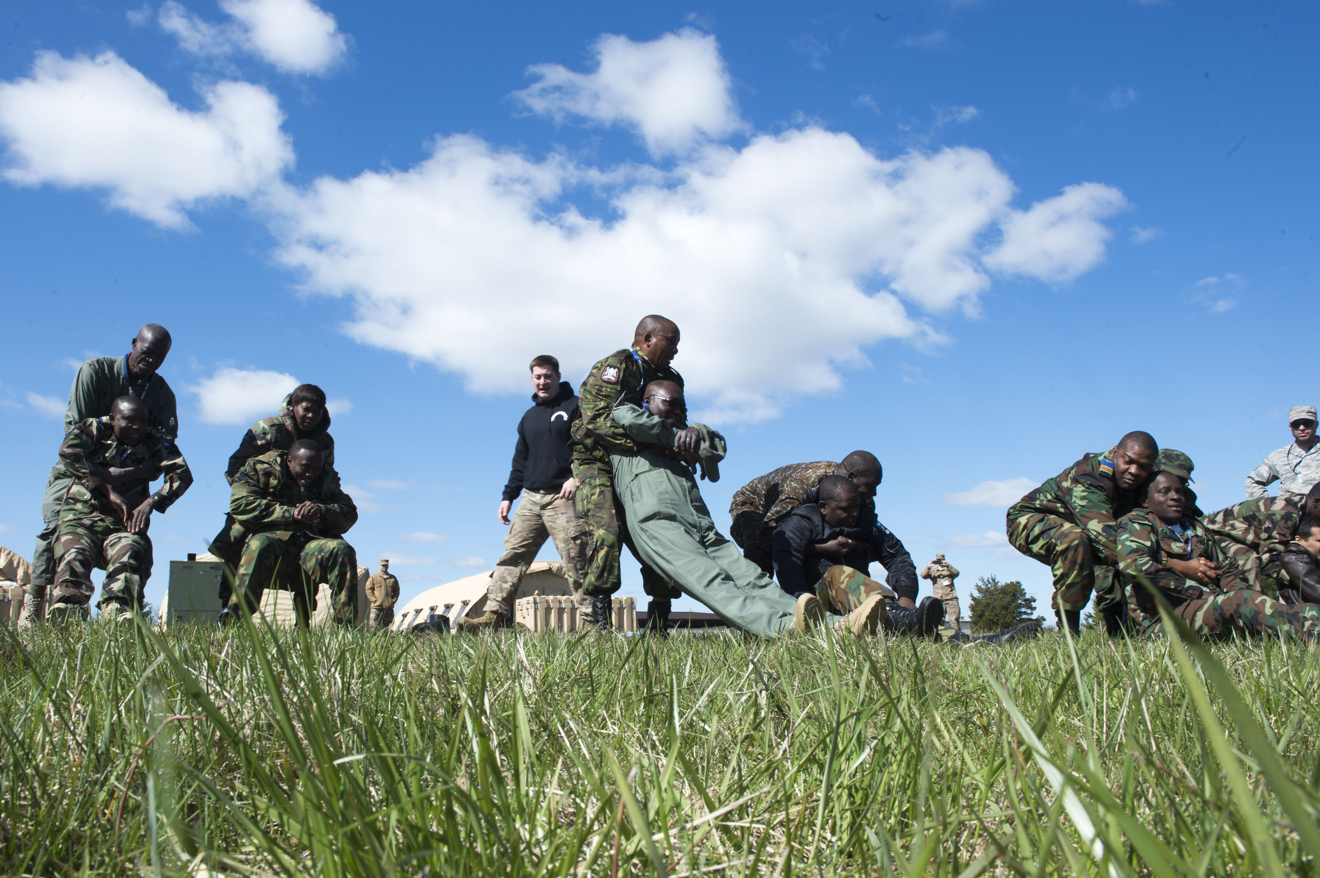 Participants from the African Partnership Flight and members of the 818th Mobility Support Advisory Squadron take part in group activities applying lessons learned from the week-long engagement during at Joint Base McGuire-Dix-Lakehurst, N.J., April 16, 2018.The MSAS has more than 70 technical experts, many with Air Advisor experience, representing nearly 35 Air Force specialties. (U.S. Air Force photo by Tech. Sgt. Gustavo Gonzalez)