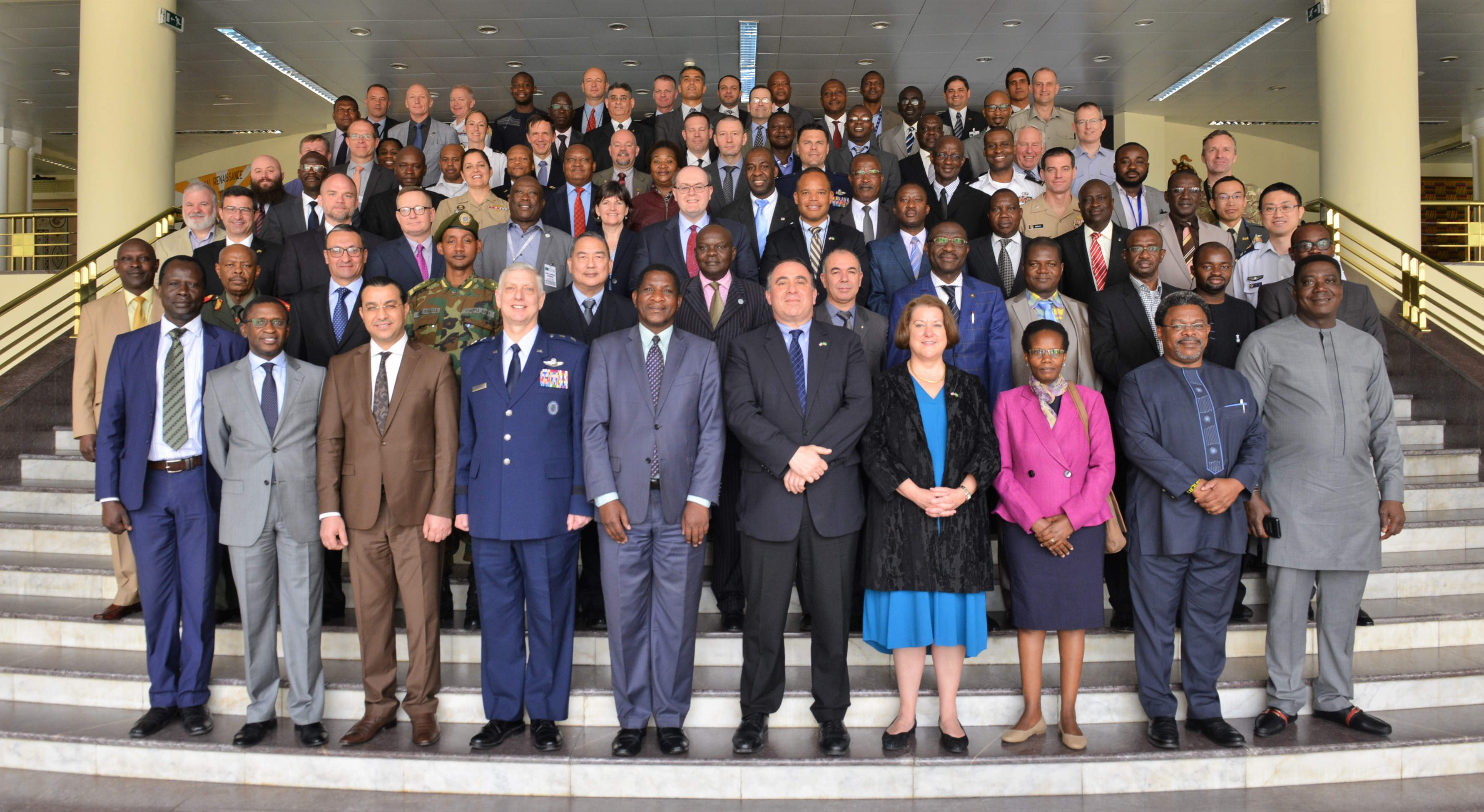 ADDIS ABABA, Ethiopia -– Attendees of Africa Logistics Symposium 2018, formerly known as Africa Logistics Forum, pose for a group photos, April 11, 2018, at the African Union Compound, Addis Ababa, Ethiopia. The AU, in conjunction with U.S. Africa Command, hosted the symposium, April 11-13, 2018, at the AU compound.