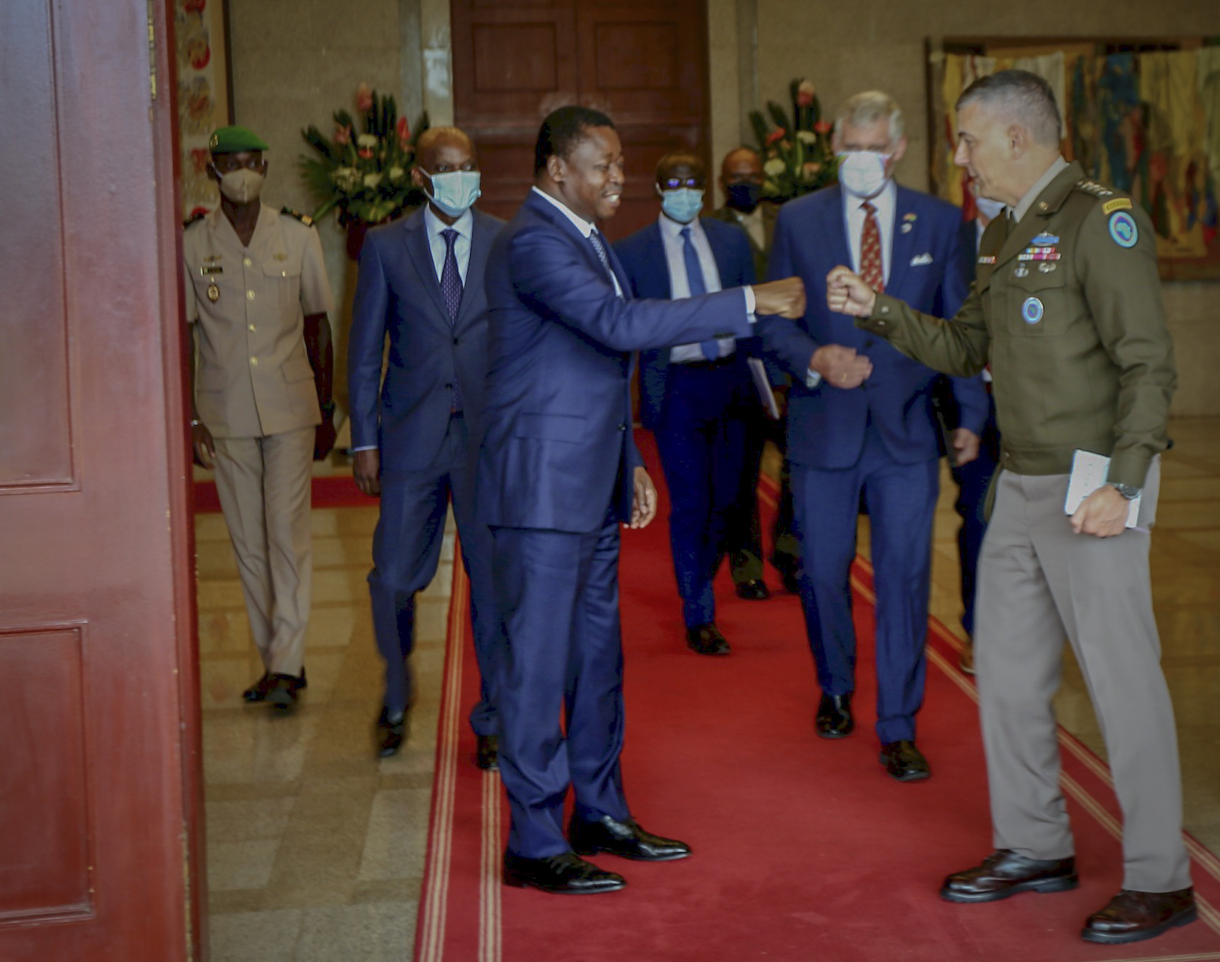 President of Togo Faure Gnassingbe welcomes Gen. Stephen Townsend, commander, U.S. Africa Command, during a multi-day visit to West Africa, with stops in Togo and Benin, September 22-23. Meetings were held among high-ranking security leaders to recognize the strong military ties between the U.S. and Togo, and to encourage Togo’s continued role in regional security.
