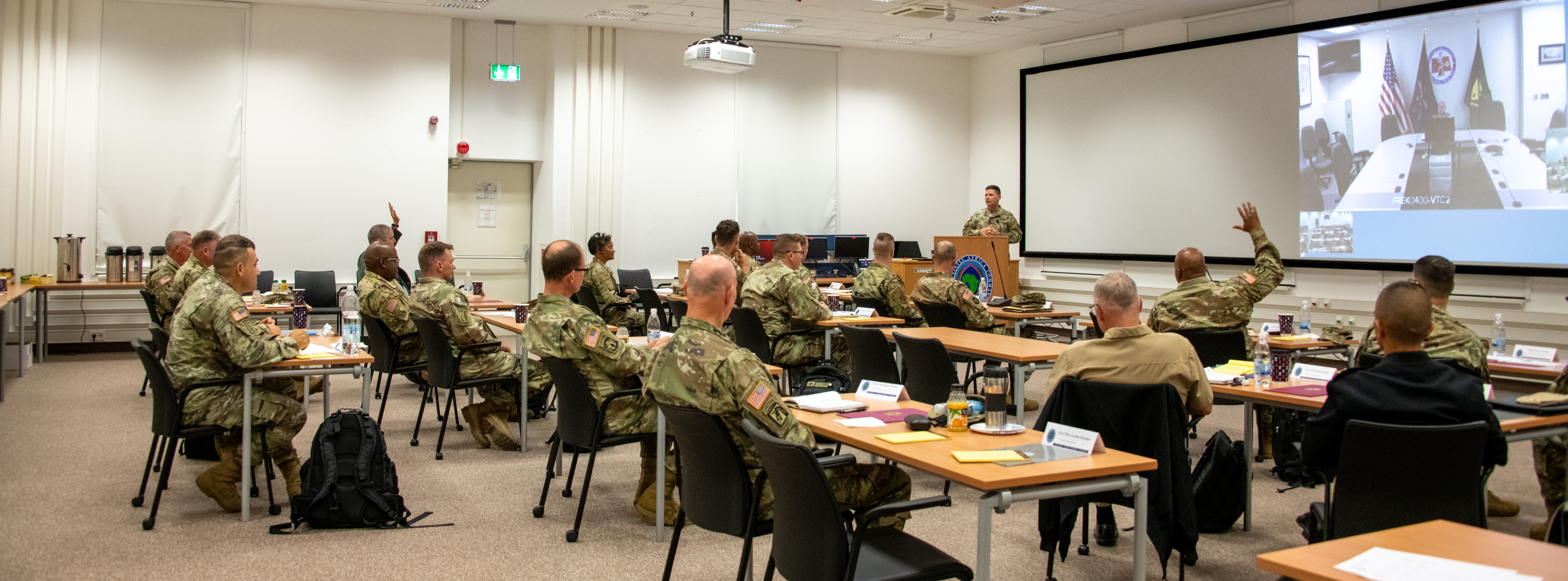 Chaplains assigned to U.S. Africa Command listen to Maj. Gen. Joel Tyler, Headquarters Chief of Staff, U.S. Africa Command, talk about the importance of educating others about their work in Africa and how it develops and sustains good governance. U.S Africa Command held its religious affair conference at Kelley Barracks, near Stuttgart, Germany, from Sept. 20-22, 2021.