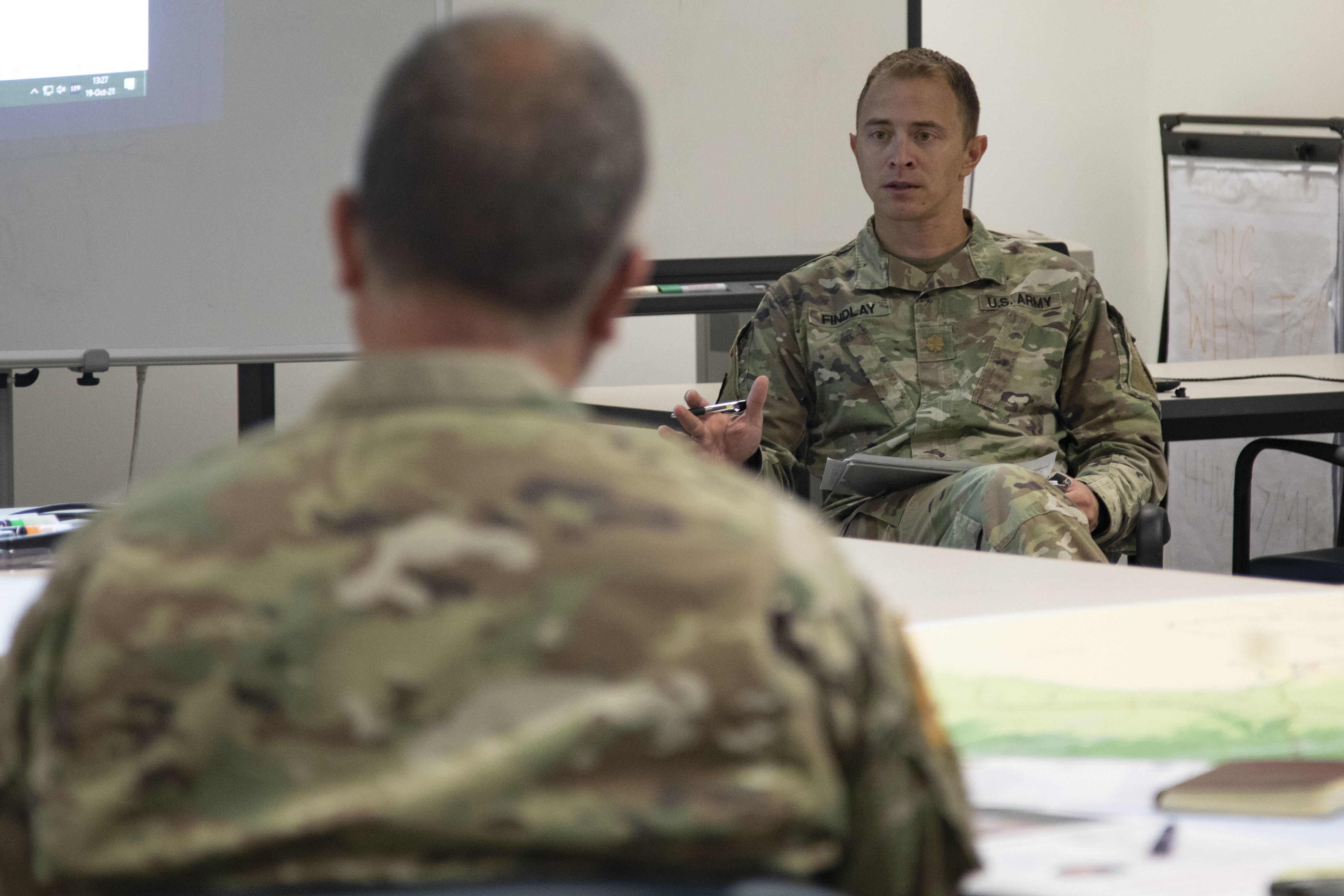U.S. Army Southern European Task Force operations analyst Maj. Kurt Findlay leads a training session during the African Gap Analysis Planning Exercise, held in October at Caserma Ederle in Vicenza, Italy. The event examined how ongoing situations throughout the continent affect SETAF-AF's current and evolving distribution networks, while simultaneously validating innovative logistics concepts that increase the velocity of support and strategic freedom of maneuver. (U.S. Army photo by Staff Sgt. Amanda Fry)
