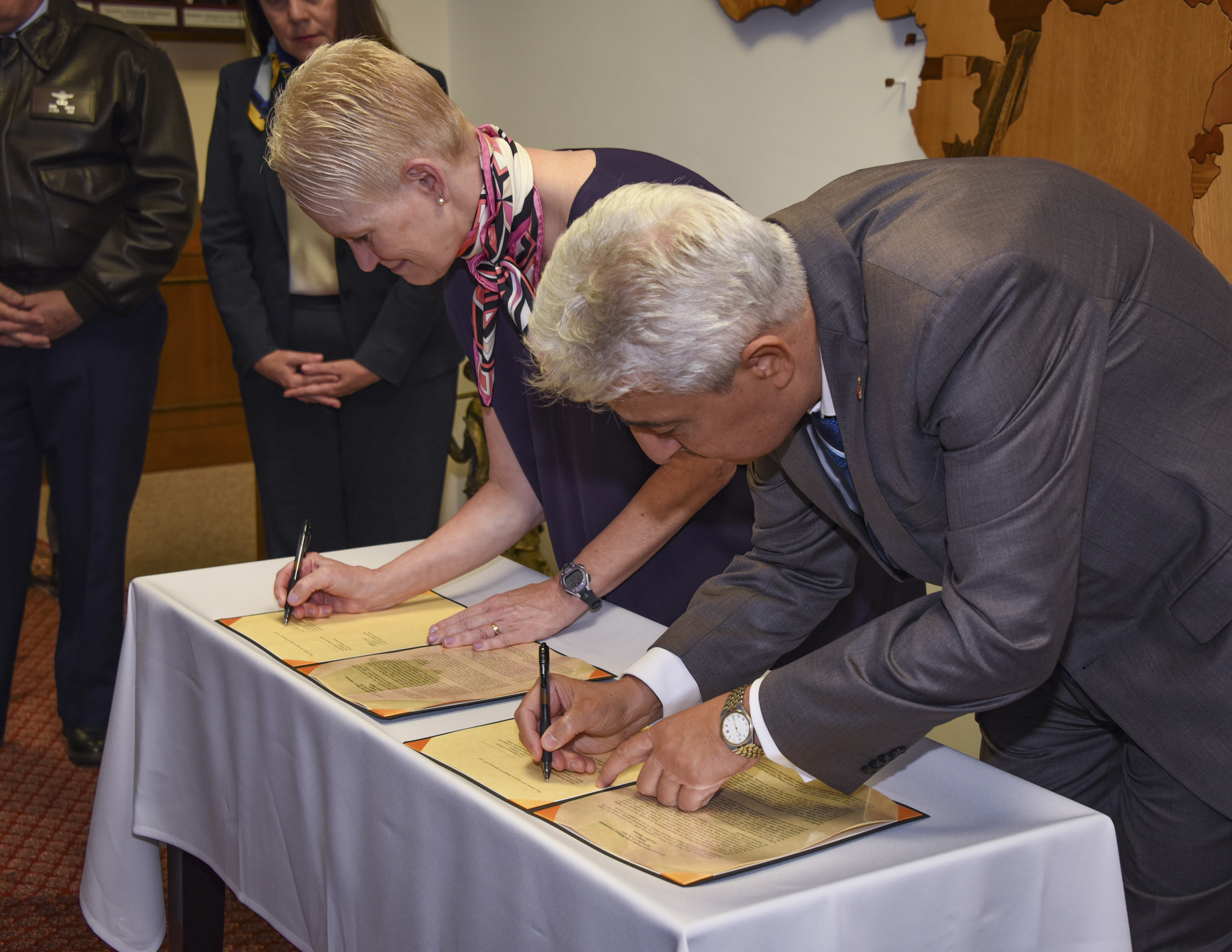 Assistant Secretary of Defense for International Security Affairs Dr. Celeste Wallander, and Tunisian Minister of National Defense Imed Memmiche, sign a memorandum of understanding during the 35th U.S.-Tunisia Joint Military Commission held Sept. 27-28, 2022, at U.S. Africa Command headquarters in Stuttgart, Germany. The U.S. and Tunisia agreed to continue to work closely together to strengthen their bilateral strategic partnership and achieve mutual strategic interests in accordance with goals of the U.S-Tunisian Roadmap for Defense Cooperation.