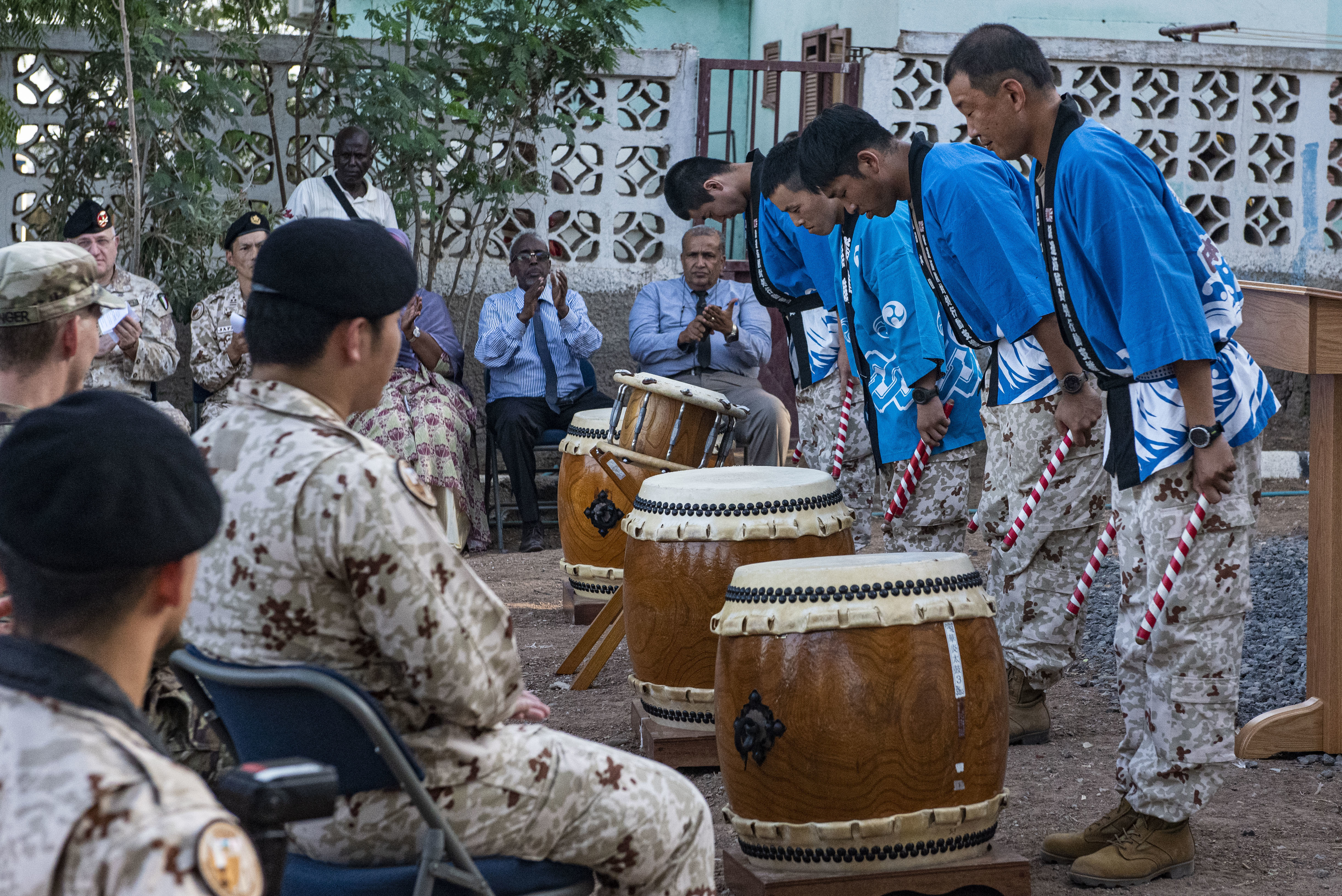 Japanese Takio Drummers bow after a performance during the opening ceremony of a Library at the Balbala 7 School in Balabala, Djibouti, Oct. 4, 2022. The opening ceremony consisted of many multinational speeches and events.