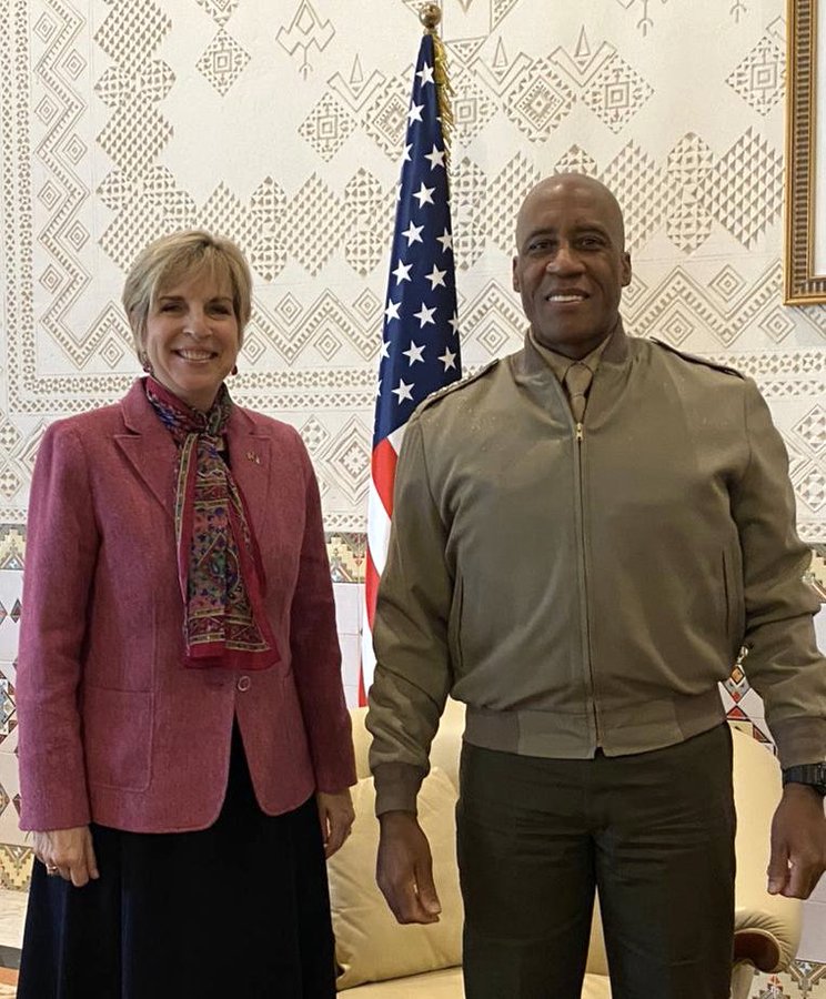 Gen. Langley, meeting with partners in North and West Africa from Feb. 6-11, 2023, continued his trip in Algeria by meeting with U.S. Ambassador to Algeria Elizabeth Moore Aubin. The U.S. employs a whole-of-government approach to ensure security cooperation with Algeria counters violent extremism and supports peace in the region.