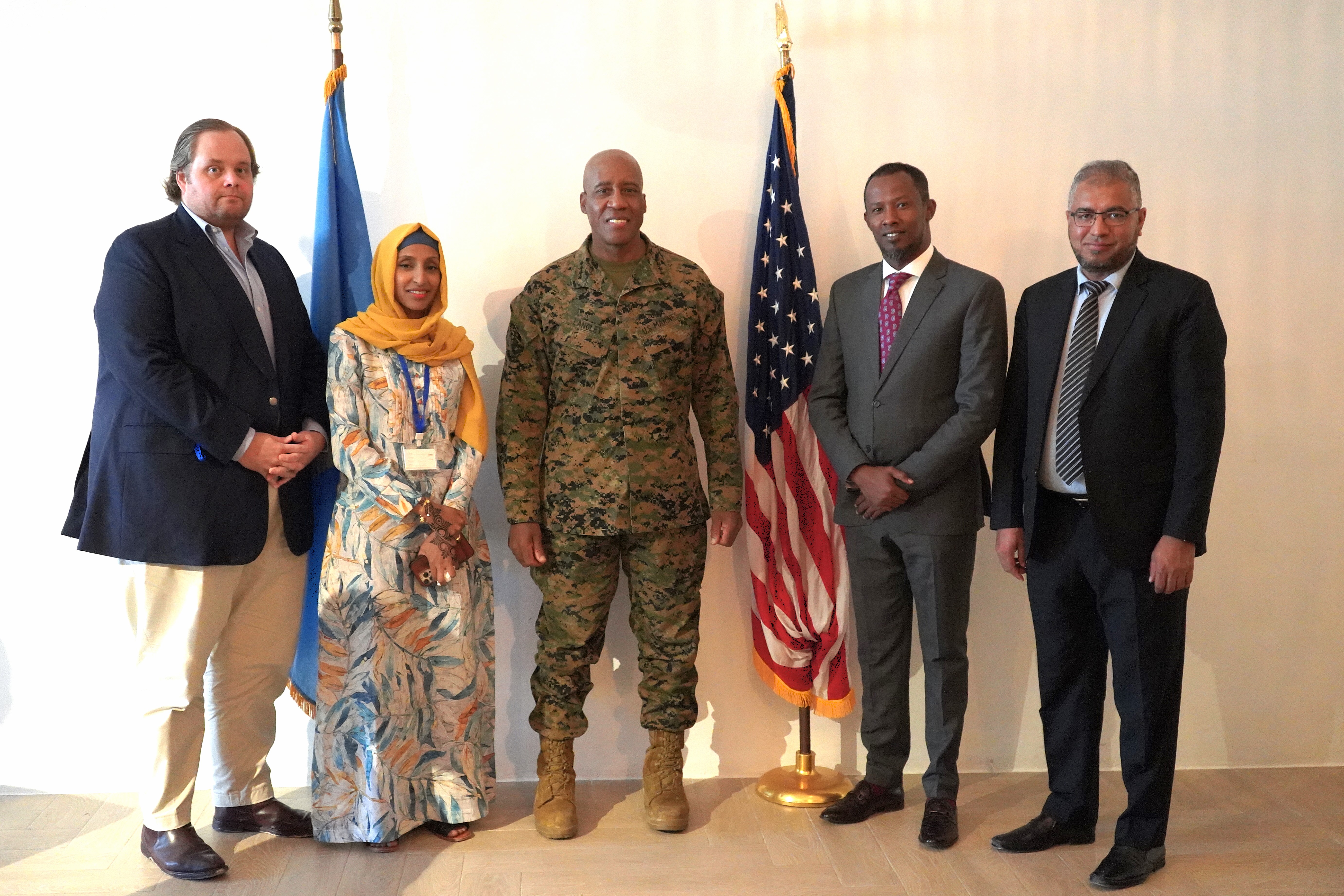 U.S. Marine Corps Gen. Michael Langley engages in discussions with U.S. Aid Somalia Director Sheri Nouane-Duncan-Jones and Somali government officials during a meeting in Mogadishu. The focus is on strengthening collaboration, humanitarian efforts, and counterterrorism initiatives in the region. Gen. Langley’s visit underscores the partnership between the United States and Somalia in promoting stability and security.