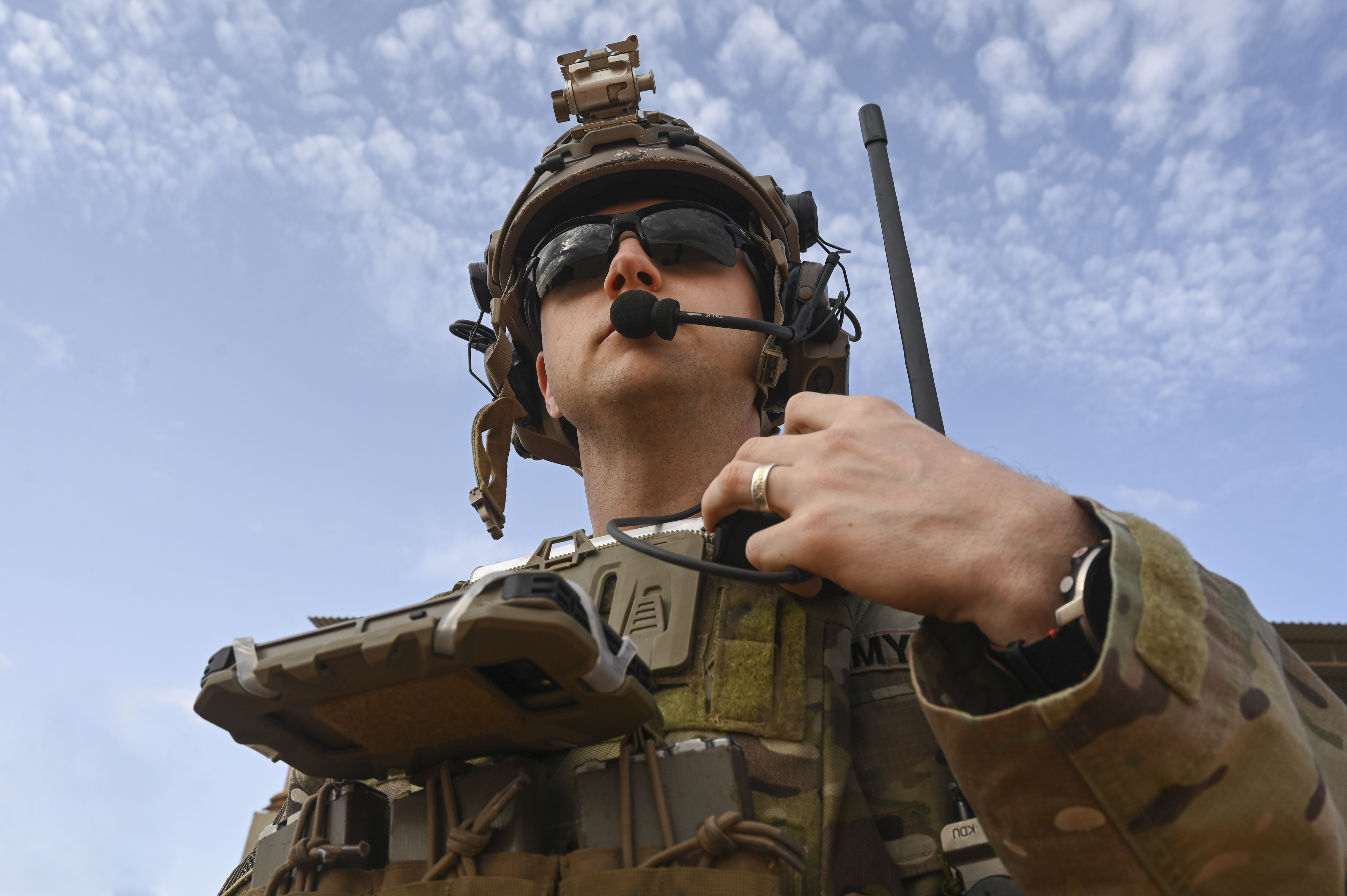 250225-F-UN699-1140: A U.S. Army joint terminal attack controller uses his android tactical assault kit to demonstrate the marking of target points to Libyan pilots in preparation for a B-52H Stratofortress bomber task force demonstration to promote the process of reunification of Libyan military and security institutions near Sirte, Libya, Feb. 26, 2025. These missions enhance joint force lethality and deter aggression by highlighting the ability to project power globally for the collective defense and security of the U.S. homeland, partners and allies. (U.S. Air Force photo by Staff Sgt. Jake Carter)
