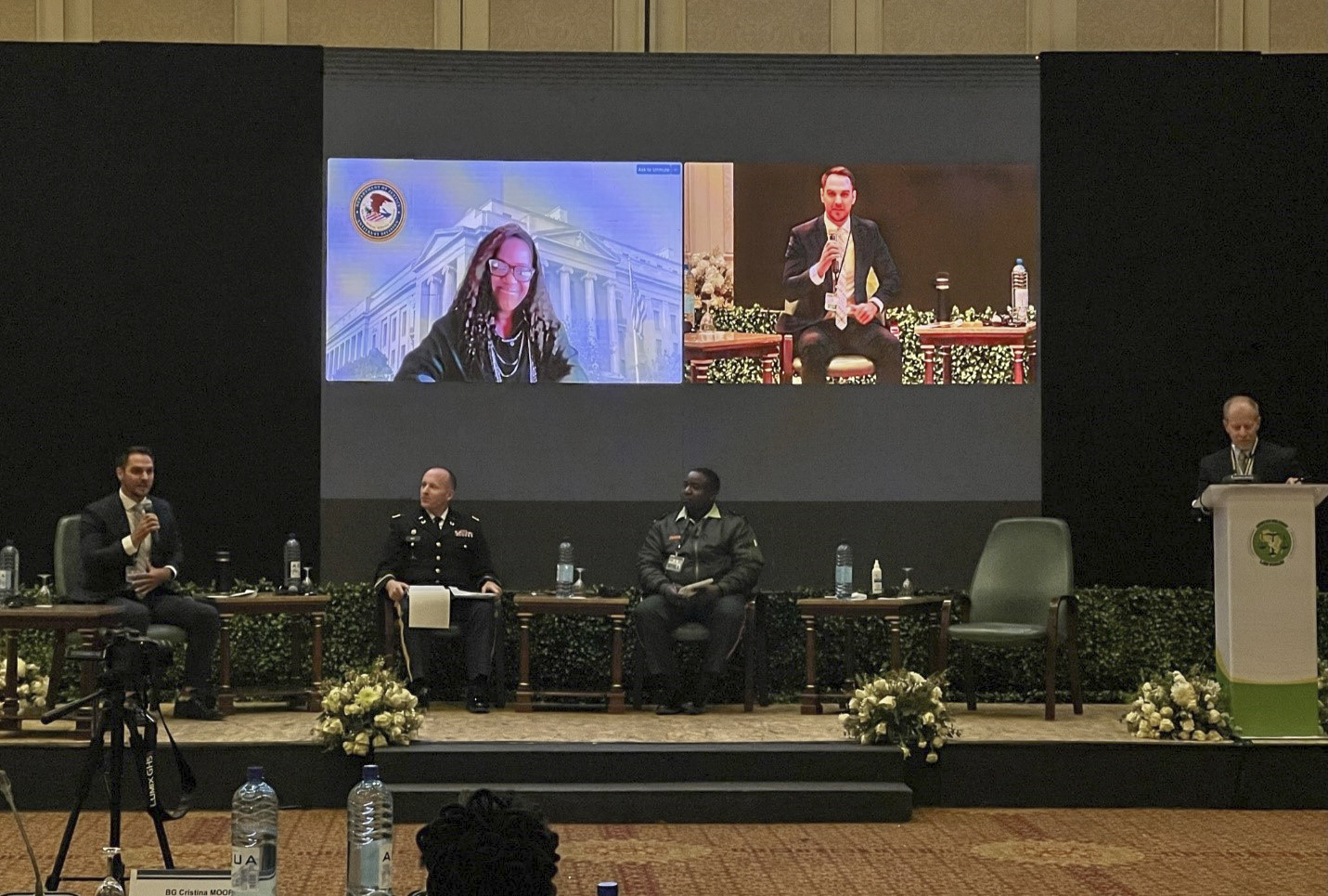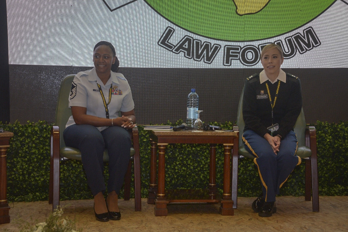 Master Sgt. Martina McKoy, command paralegal manager for U.S. Africa Command, and Capt. Katie Reynolds, chief of legal assistance for the North Carolina National Guard, shared their experiences and best practices on a panel regarding effective ways to support deployed service members in domestic and international settings during the sixth iteration of the African Military Law Forum at the Grand Palm Convention Center in Gaborone, Botswana, Aug. 6-10. The legal engagement brought together over 80 African military legal advisors, magistrates, and professionals from 40 countries in Africa to share best professional practices.