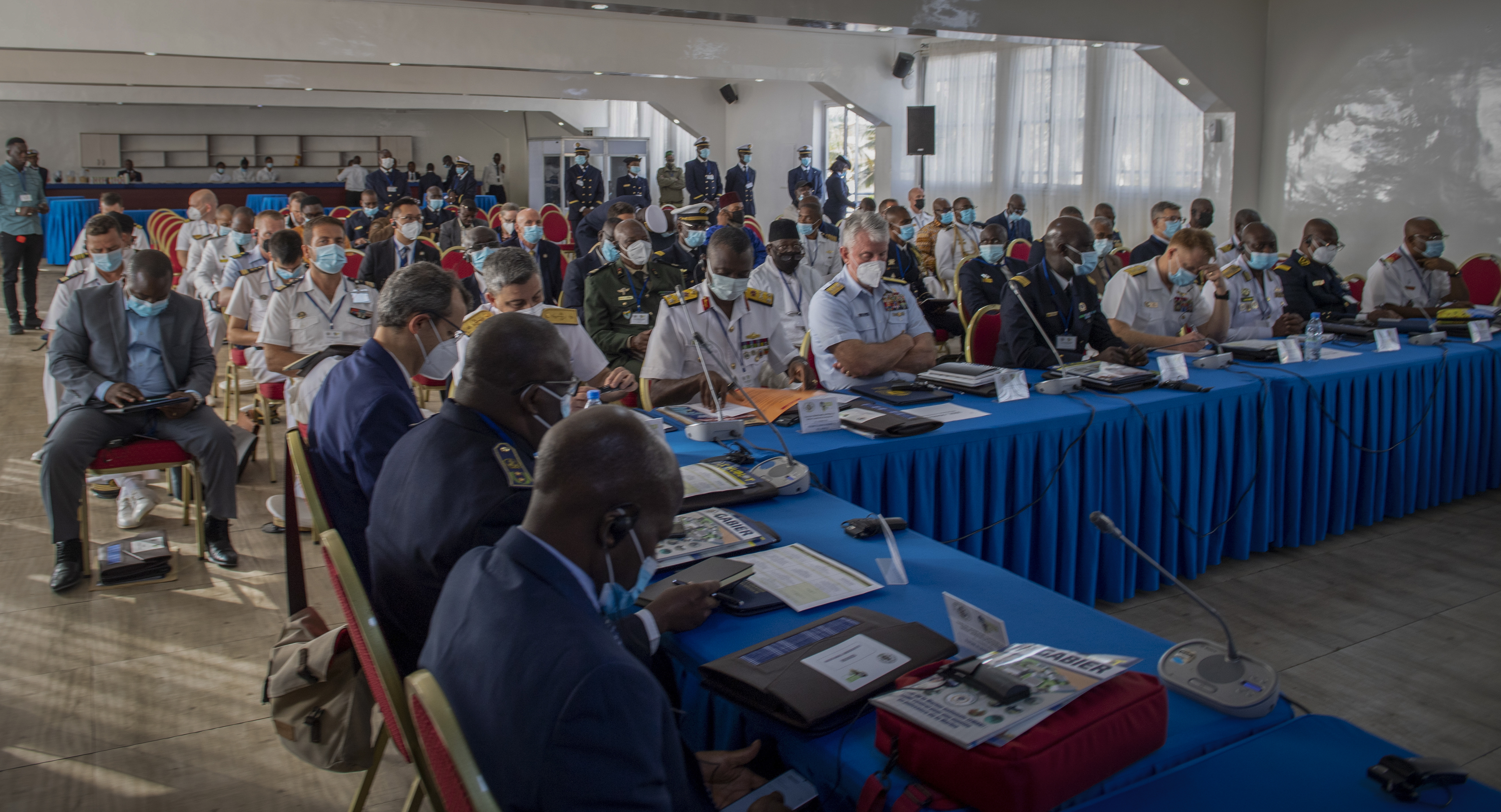 Service members from ally and African partner nations attend the Senior Leadership Symposium as part of exercise Obangame Express 2022 at the Senegalese Naval Headquarters, in Dakar, Senegal, March 16, 2022. Obangame Express 2022 is a maritime exercise designed to improve cooperation and increase maritime security in the Gulf of Guinea and West Africa coastal regions.