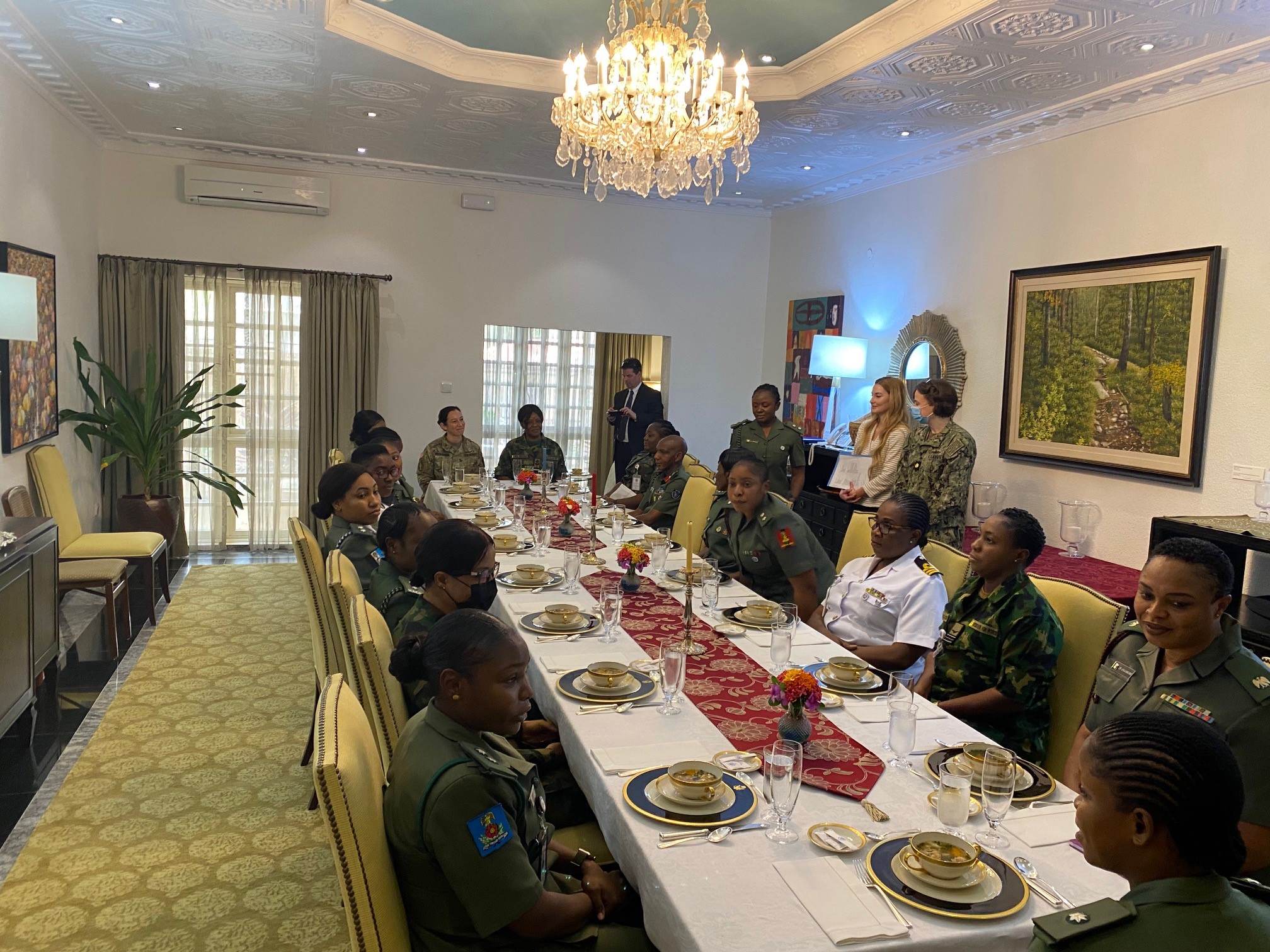 Brig. Gen. Rose Keravuori, deputy director of intelligence, U.S. Africa Command, hosts a women’s luncheon with 17 female officers from each of the Armed Forces of Nigeria military services and the commander of the Nigeria Army Women’s corps during a visit to Nigeria in March 2022.