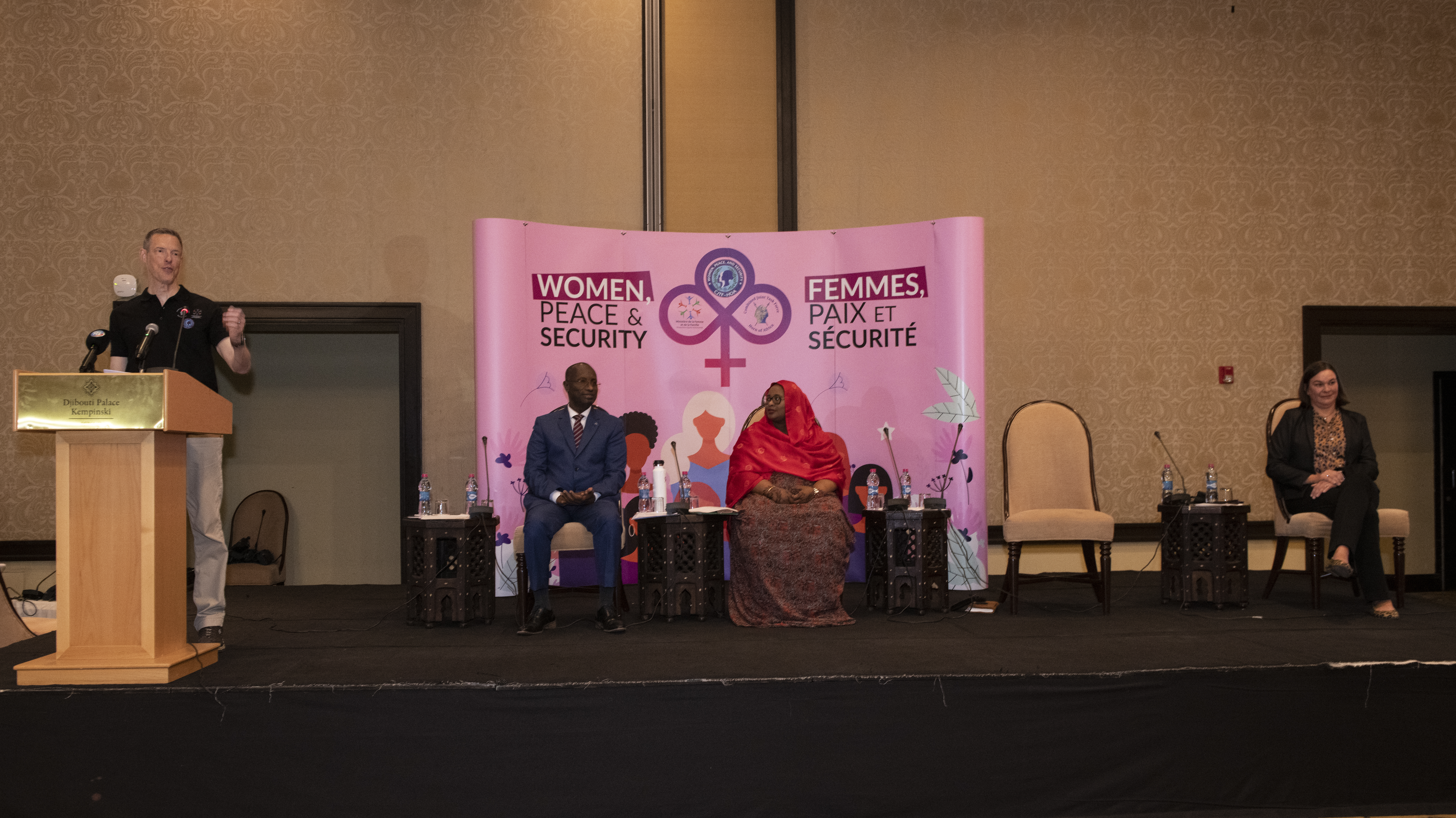 U.S. Army Maj. Gen. William Zana, outgoing commander of the Combined Joint Task Force – Horn of Africa, discusses the partnership of Djiboutian leaders, U.S. military, and the U.S. Embassy during a Women, Peace and Security workshop at the Palace Kempinski, Djibouti, May 8, 2022. The workshop focused on collaboration between the U.S. Department of Defense, U.S. Department of State and the Ministry of Women and Family to update Djibouti's WPS National Action Plan (NAP). WPS is an integral component of U.S. Africa Command’s effort enhancing African partner capability and enabling U.S. security cooperation to better advance contributions by both men and women. (U.S. Air Force photo by Tech. Sgt. Lynette M. Rolen)