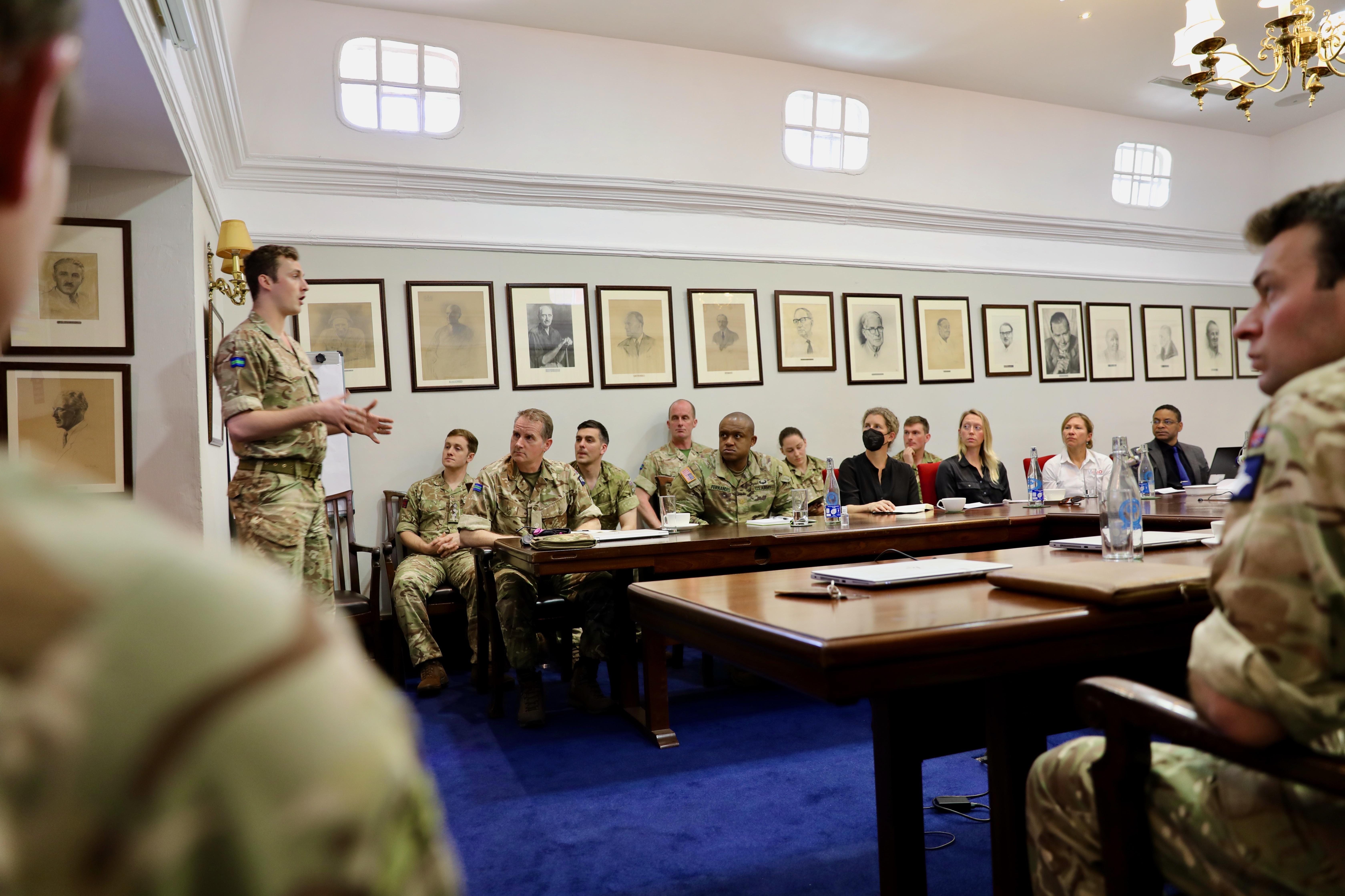 British Army, The Queens Royal Hussars, U.S. Army and inter-agencies attend a meeting to discuss operations during Exercise Justified Accord, March 11, 2022, Nairobi, Kenya. Justified Accord is U.S. Africa Command's joint, combined exercise that involves multiple U.S. military components, allied partner nations and international organizations to promote interoperability between participants for peacekeeping operations in East Africa. More than 800 participants trained together during the event that emphasized both individual and joint readiness.
