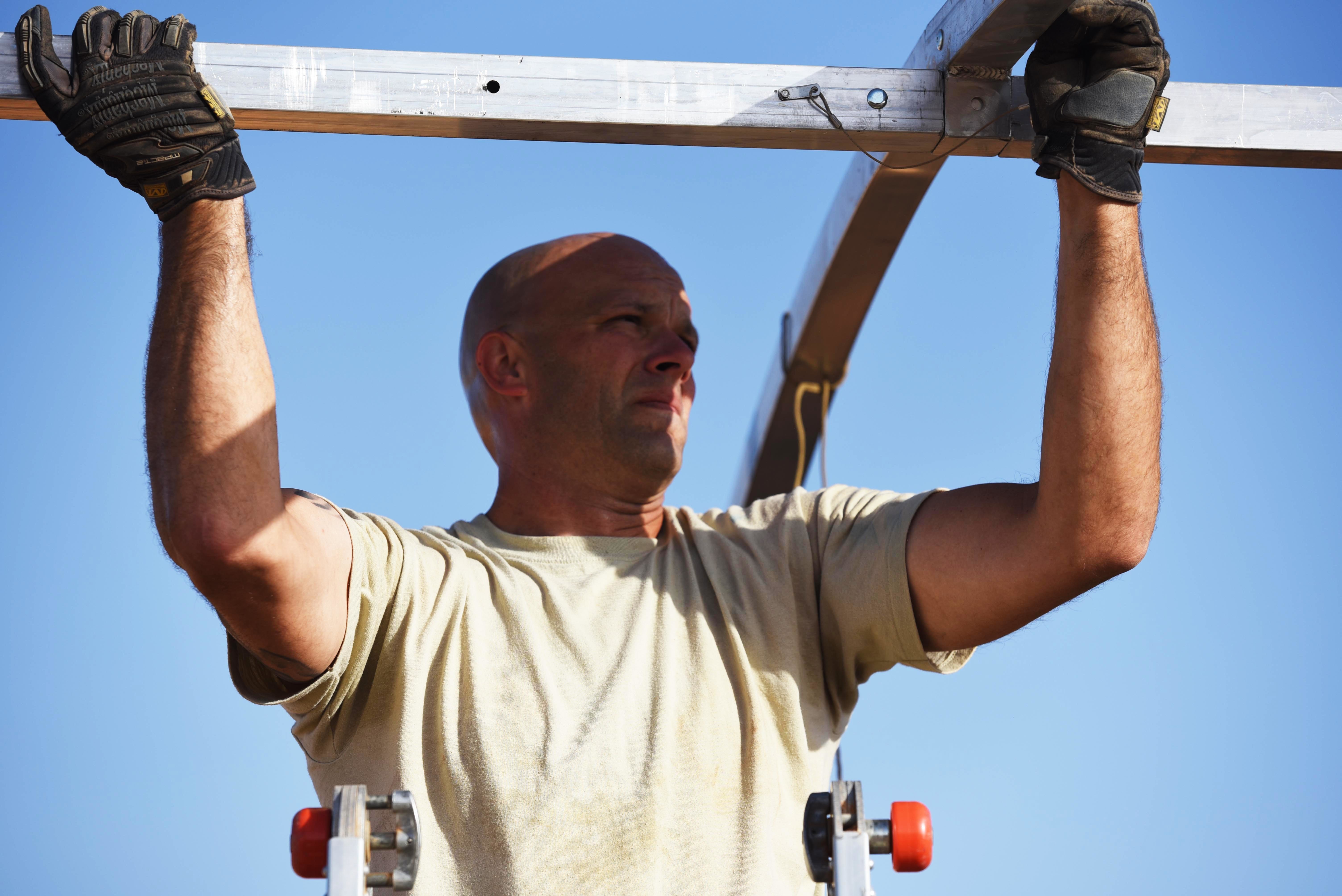 Master Sgt. Christopher Moffett, 724th Expeditionary Air Base Squadron flight superintendent, takes down tents from the old base to move to a new location, Sept. 11, 2017, at Air Base 201, Agadez, Niger. The move to the bigger base is called “FLEXIT,” short for "Flintlock Exit.” Being located in this deployed environment requires temporary housing in lieu of traditional infrastructure. (U.S. Air Force photo by Staff Sgt. Joshua R. M. Dewberry/released)