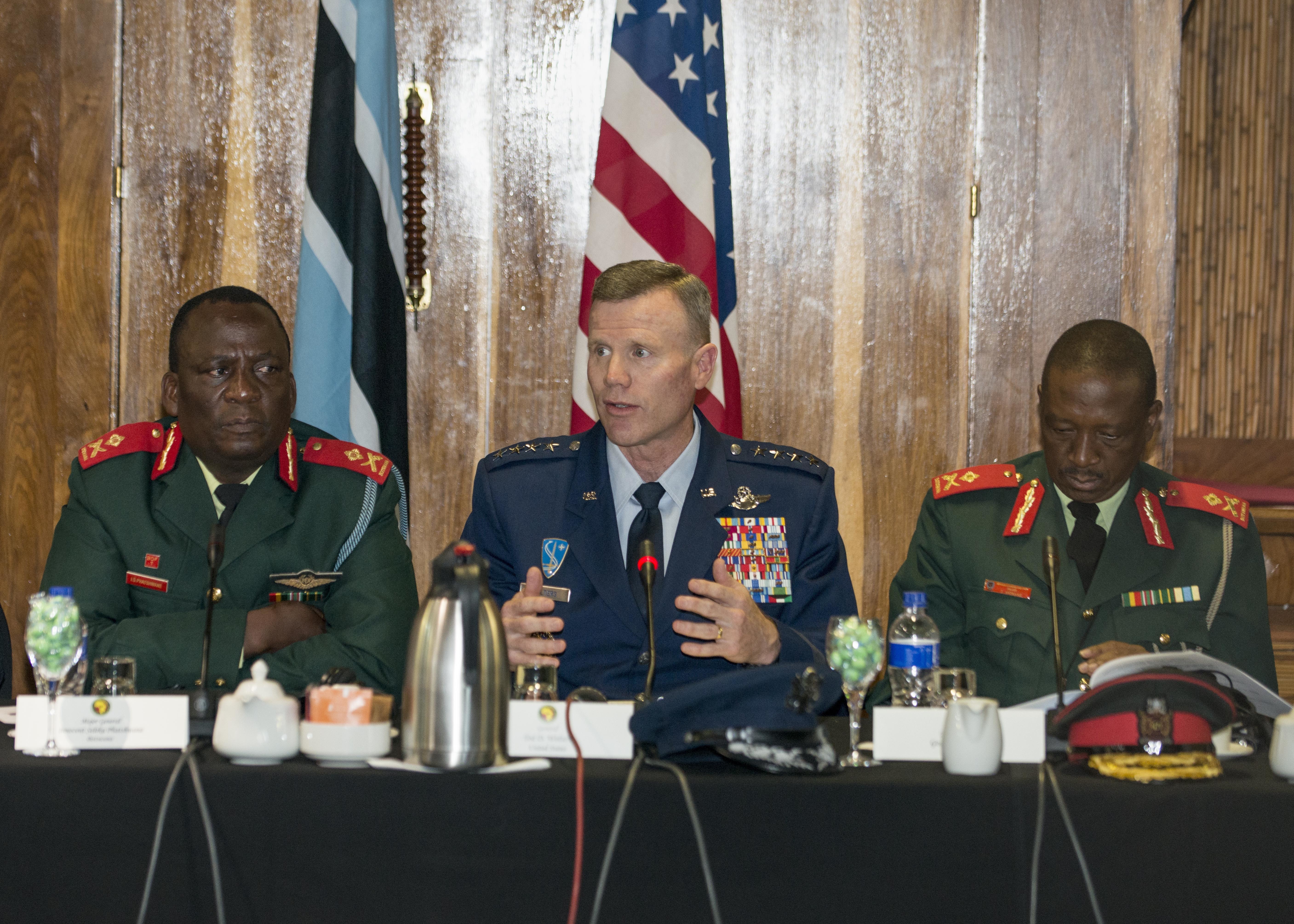 Air chiefs attending the 2017 African Air Chiefs Symposium pose for a group photo in Kasane, Botswana on May 16, 2017. The nations in attendance are Angola, Benin, Botswana, Burkino Faso, Burundi, Chad, Democratic Republic of the Congo, Gabon, Ghana, Keyna, Lesotho, Madagascar, Mali, Malawi, Mauritania, Morocco, Mozambique, Nigeria, Rwanda, Senegal, Seychelles, South Africa, Swaziland, Tanzania, Togo, Tunisa, Uganda, United States of America and Zambia. A representative from the African Union was also in attendance. (U.S. Air Force photo by Staff Sgt. Krystal Ardrey/Released)
