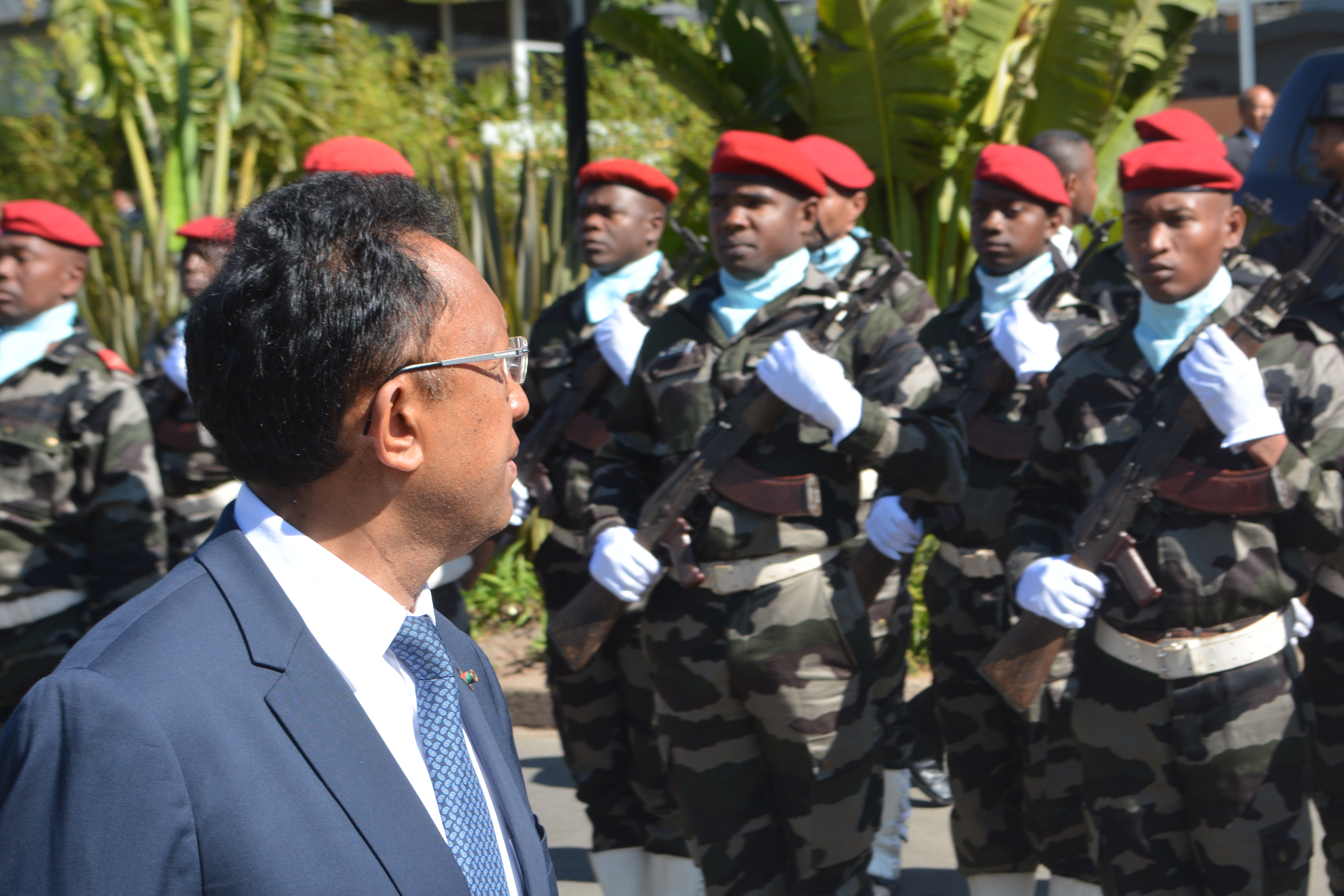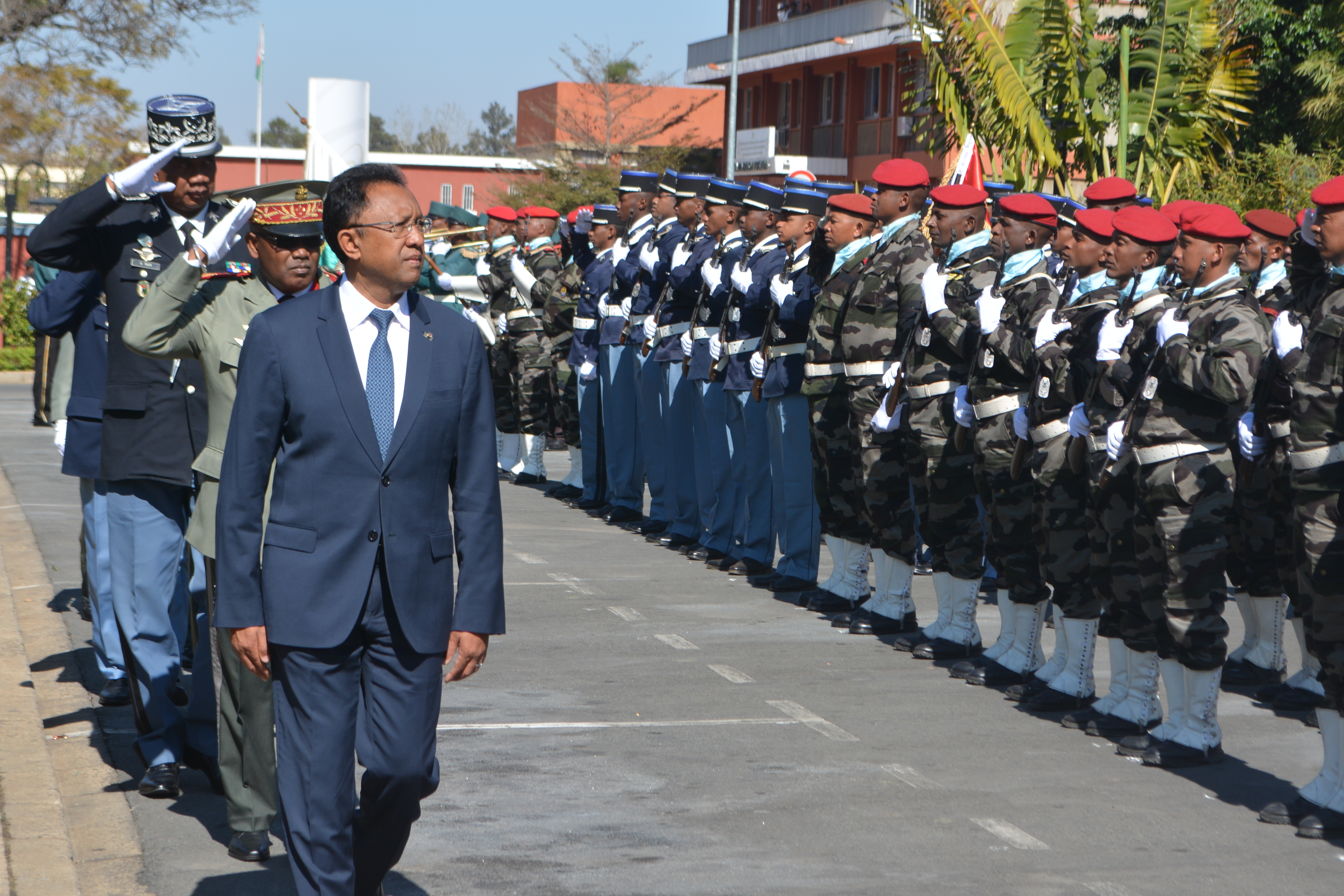 Inspection of troops during the opening ceremony for Africa Endeavor, an annual communications and information-sharing event that helps develop multinational communications interoperability for African Union and United Nations mandated peace keeping and disaster response missions in Africa, Aug. 22, 2016, Antananarivo, Madagascar. (Photo by U.S. AFRICOM Public Affairs/Released)