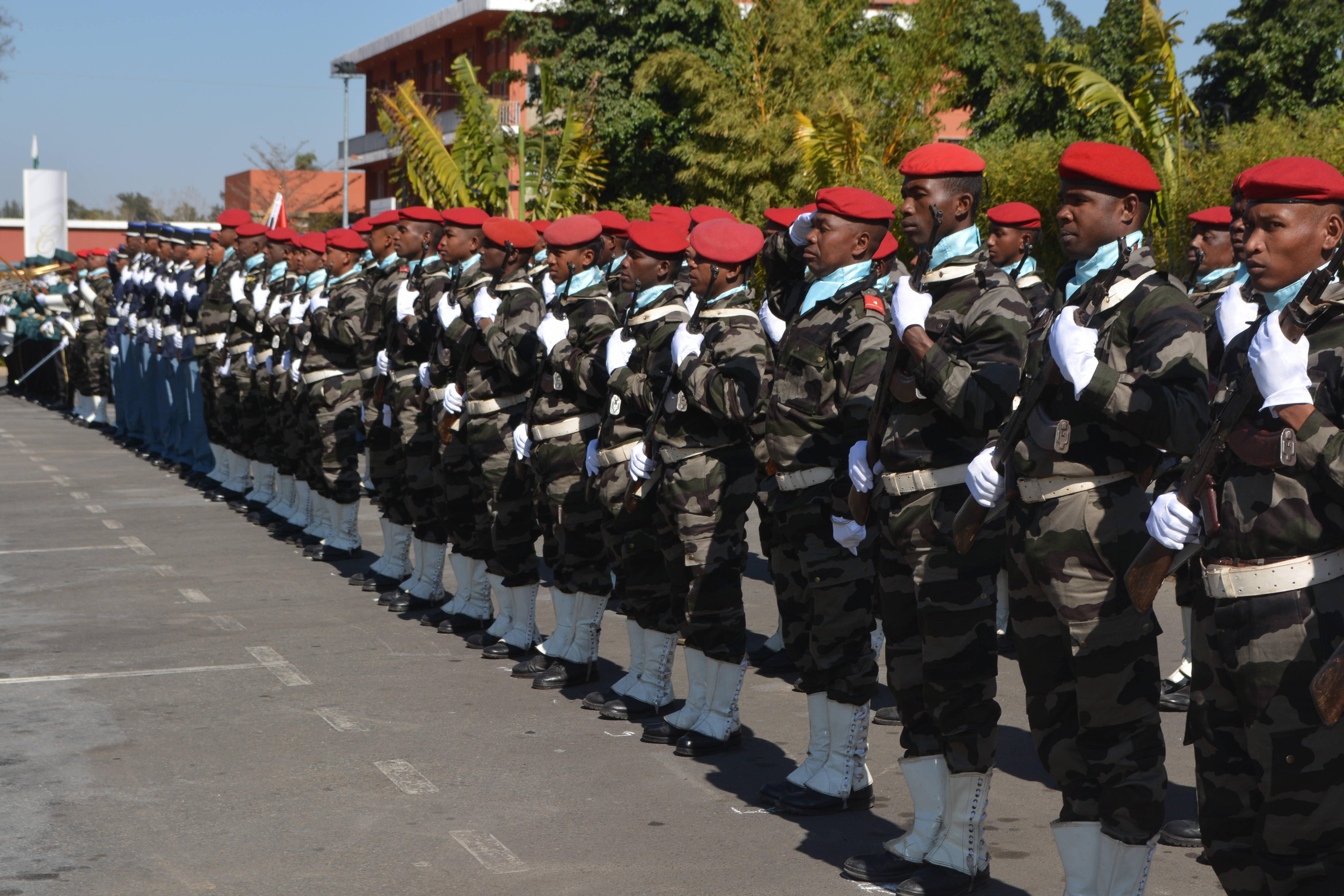 Africa Endeavor 16 participants stand in front of the Madagascar Defense Force Signal School during the closing ceremony of AE16 19 AUG., 2016. AE16 is an annual U.S. Africa Command sponsored training and information sharing effort to help develop African multi-national communication interoperability for African Union and United Nations mandated peacekeeping and disaster response in Africa. Over 40 African nations participated in this year's events.