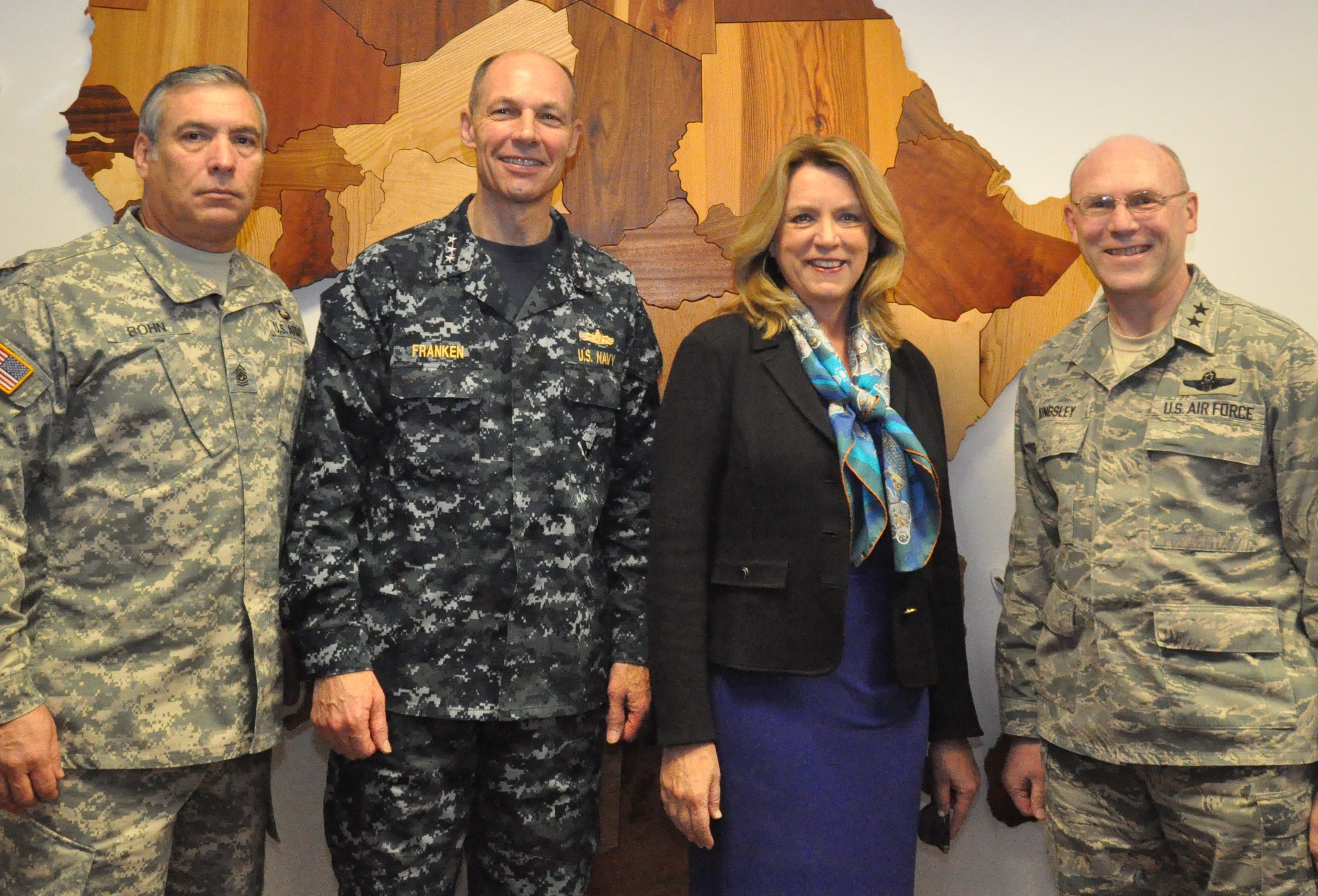 Secretary of the Air Force visits AFRICOM. Secretary of the Air Force Deborah Lee James poses with senior leaders of U.S. Africa Command at the command's headquarters, Nov. 18, 2015. Pictured left to right: Senior Enlisted Leader, U.S. Army Command Sgt. Maj. Darrin Bohn; Deputy to the Commander for Military Operations, U.S. Navy Vice Adm. Michael Franken; Secretary James, and Chief of Staff, U.S. Air Force Maj. Gen. Michael Kingsley. (U.S. Africa Command photo by Brenda Law/RELEASED)