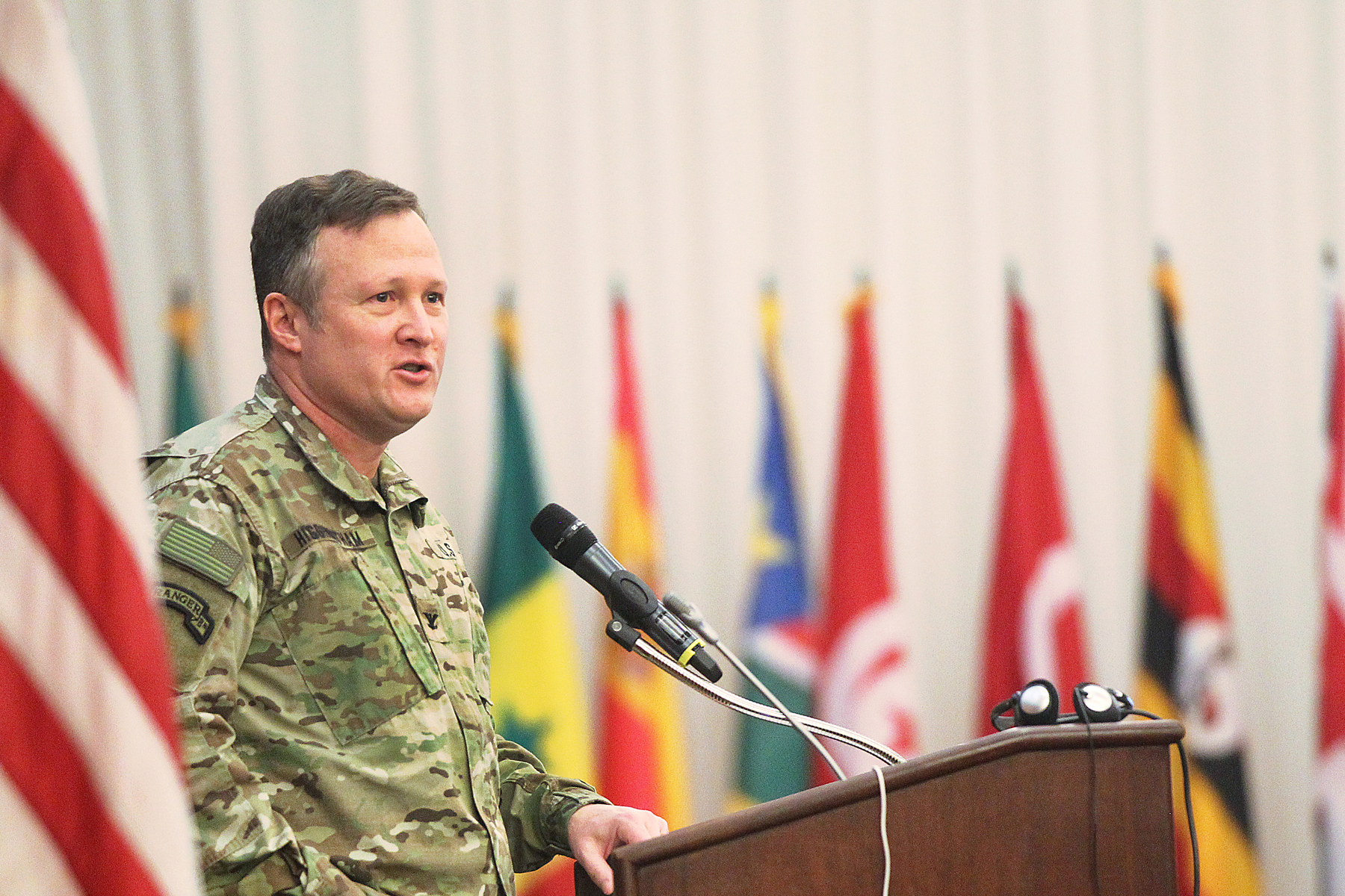 Col. Michael Kabango, the Operation Lightning Thunder commander with the Ugandan People’s Defence Force, gives remarks during a Central Africa break out session at the Special Operations Command – Africa Commander’s Conference on Monday, November 16. Col. Kabango described challenges facing UPDF forces during the search for Joseph Kony and potential strategies for neighboring forces to work together in the coming months.