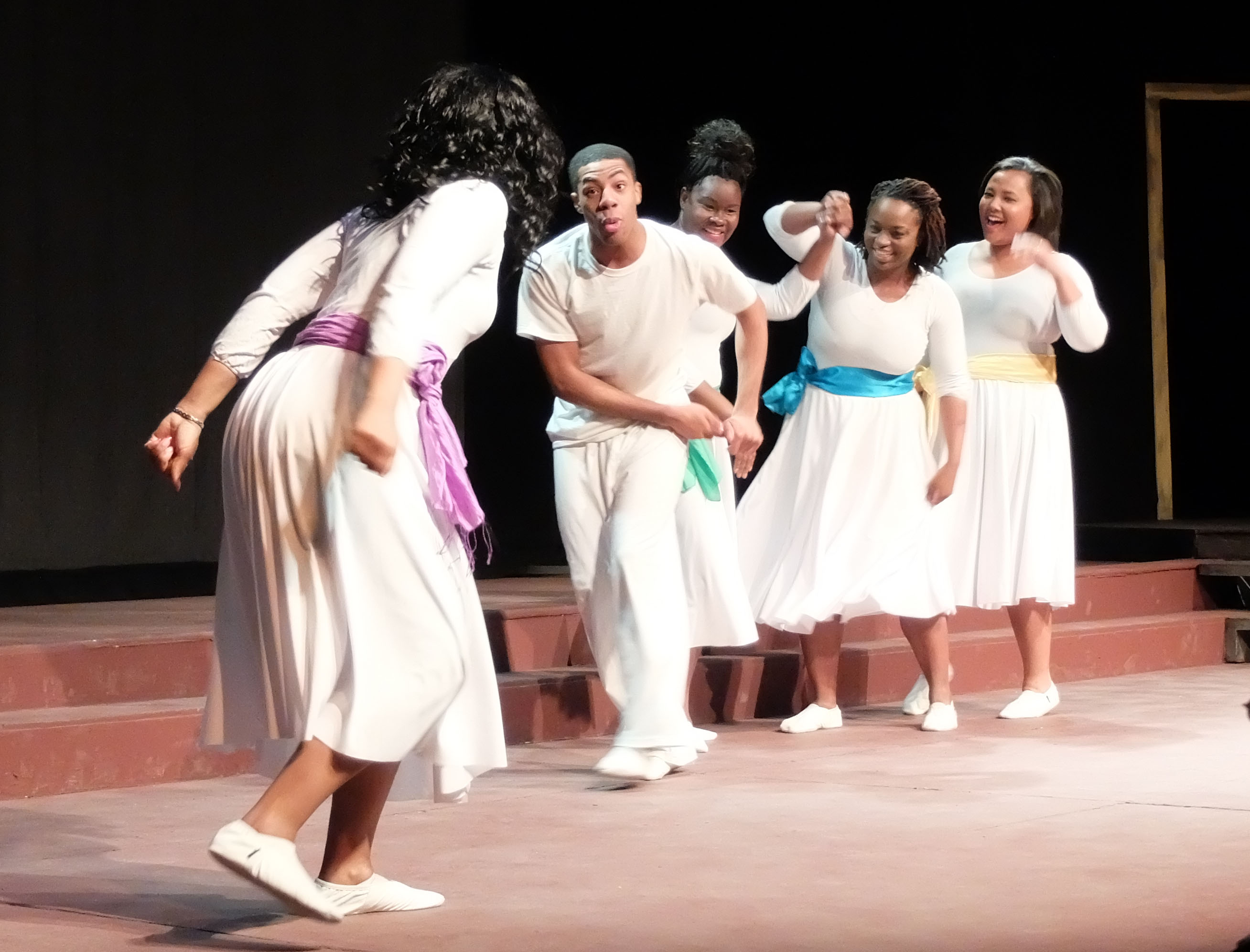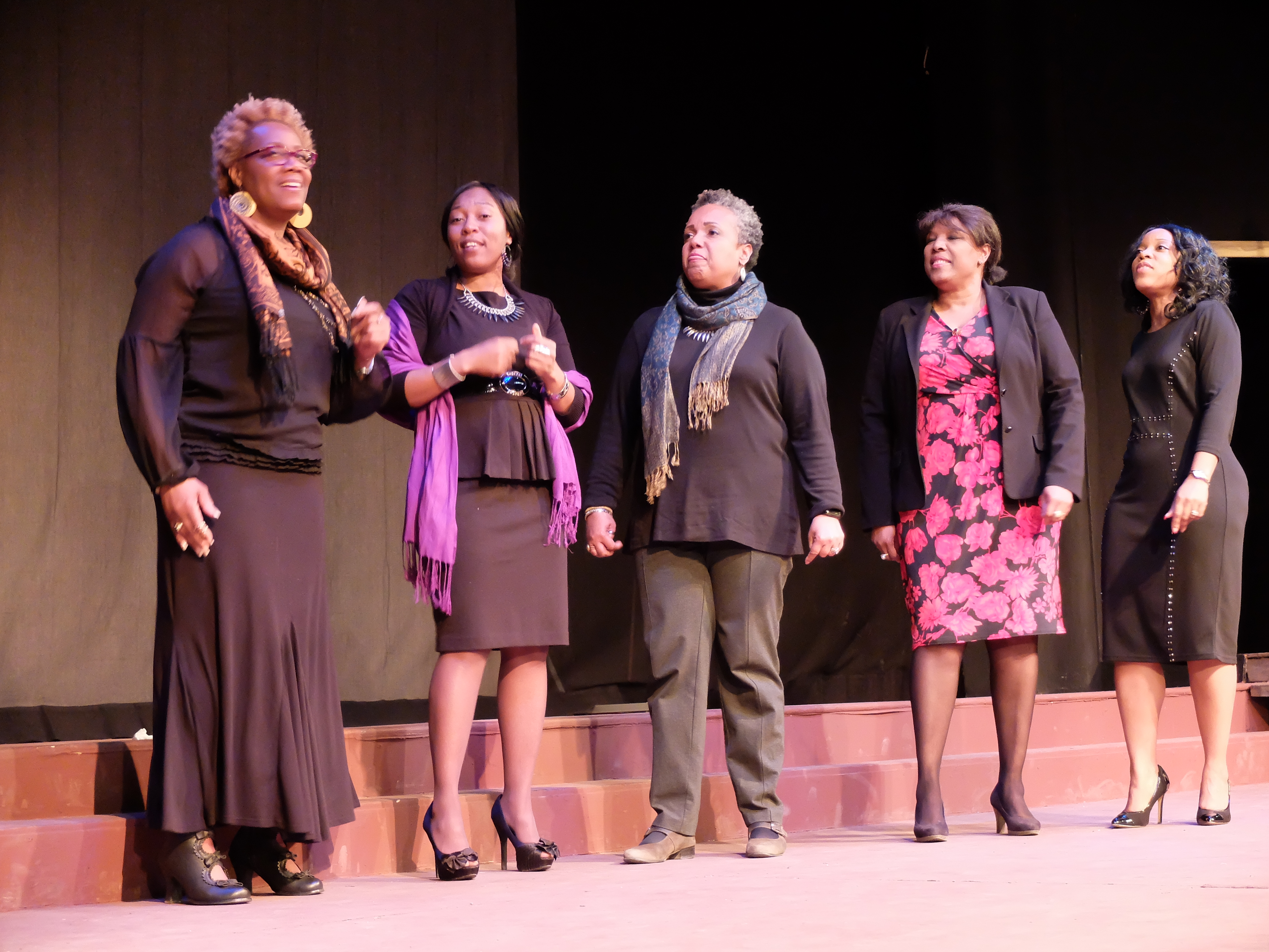 Juba Dance being performed from the play, "Her Stories." “A Century of Black Life, History and Culture” served as the theme for this year’s Black History Month celebration, held at Kelley Barracks, U.S. Army Garrison Stuttgart, Feb. 26, 2015. Performances by the Patch High School and Stuttgart Gospel Service Choirs and a dance from the play “Her Stories” highlighted the accomplishments of African Americans over the past century. (U.S. Africa Command photos by Brenda Law/Released)