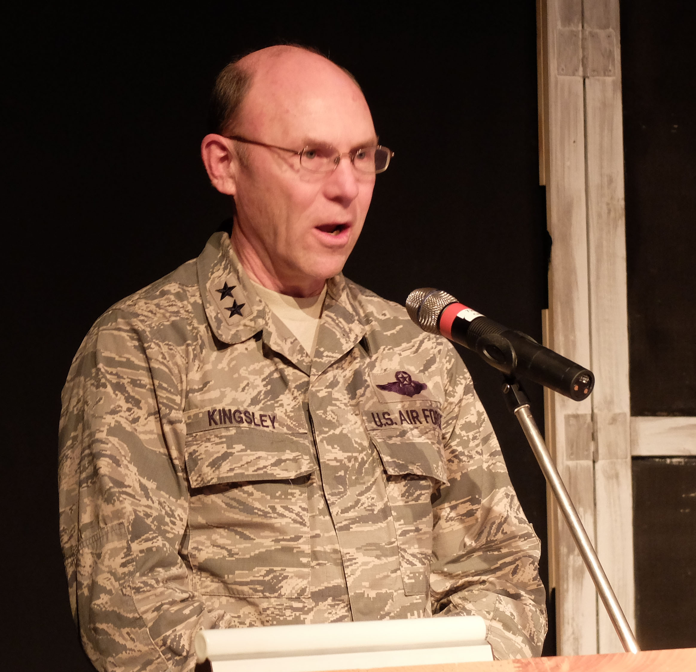 AFRICOM Chief of Staff, U.S. Air Force Maj. Gen. Michael Kingsley, delivers remarks. “A Century of Black Life, History and Culture” served as the theme for this year’s Black History Month celebration, held at Kelley Barracks, U.S. Army Garrison Stuttgart, Feb. 26, 2015. Performances by the Patch High School and Stuttgart Gospel Service Choirs and a dance from the play “Her Stories” highlighted the accomplishments of African Americans over the past century. (U.S. Africa Command photos by Brenda Law/Released)