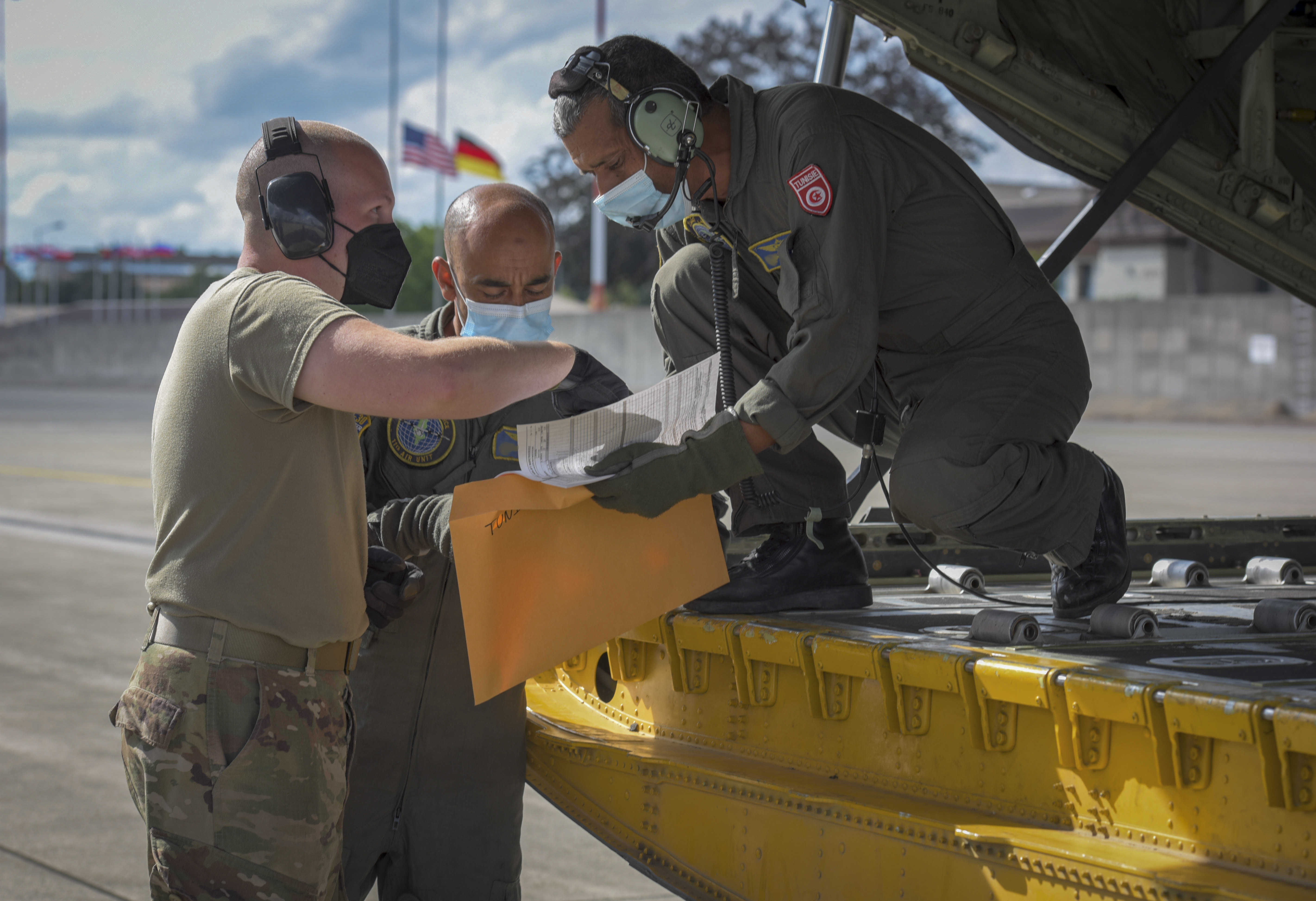 U.S. Africa Command purchased the canisters locally in Germany where the 21st Theater Sustainment Command, based out of Kaiserslautern, Germany, transported them to Ramstein Air Force Base. U.S. Air Force personnel loaded the cannisters onto pallets and a Tunisian C-130 delivered the donated oxygen to Tunisia.