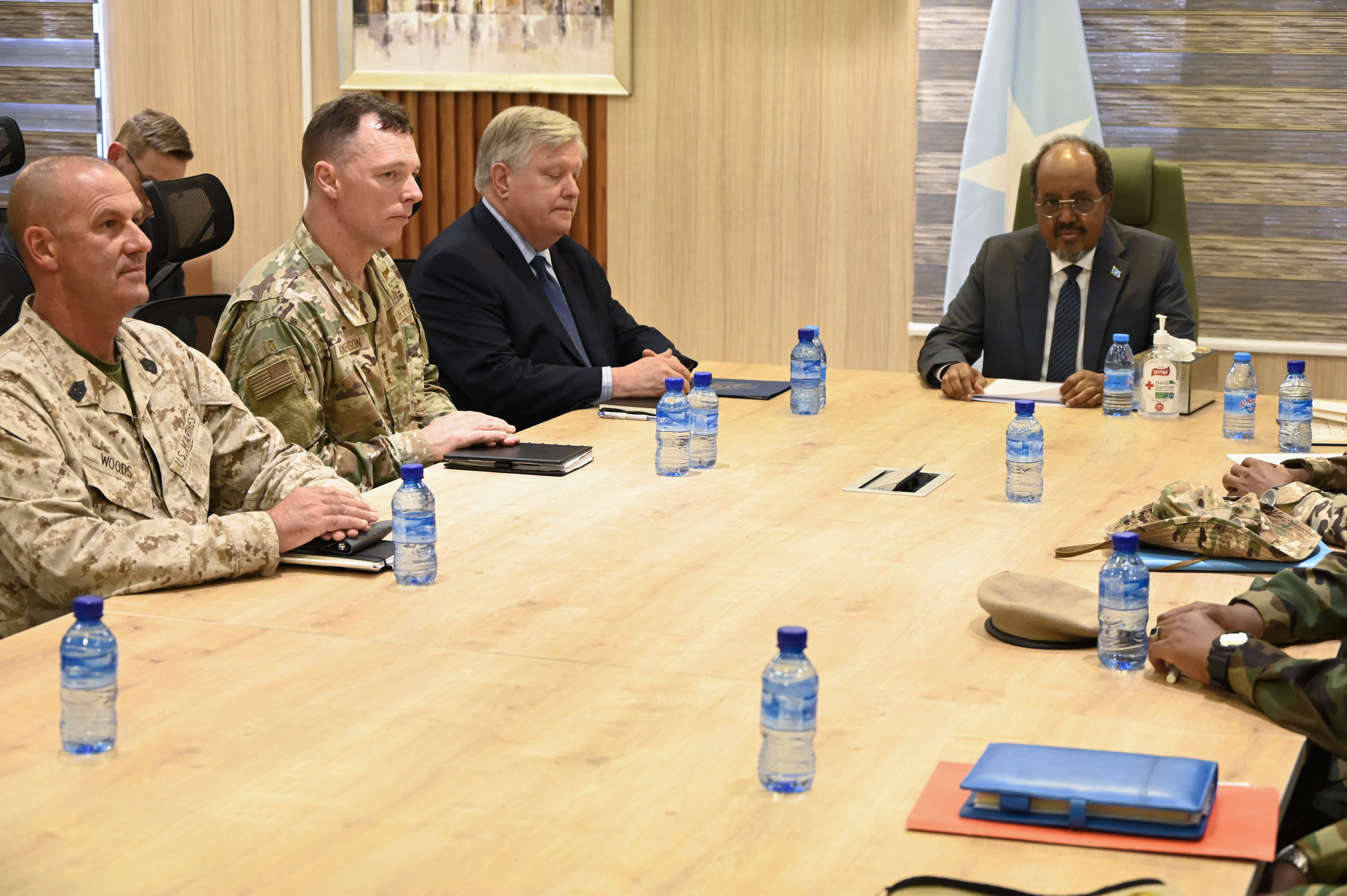 During his engagements in Mogadishu, Gen. Anderson met with Somali President Hassan Sheikh Mohamud, U.S. Ambassador to Somalia Jonathan Riley, and senior Somali security officials at the Joint Operations Coordination Center.